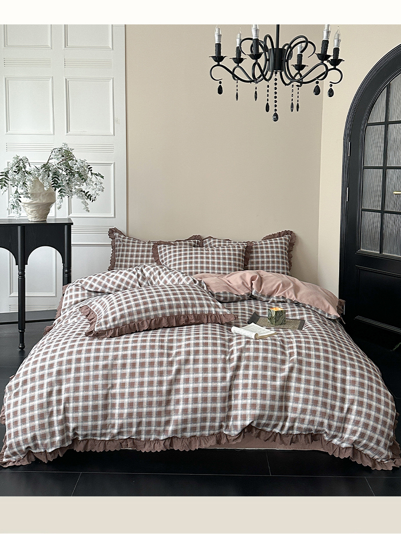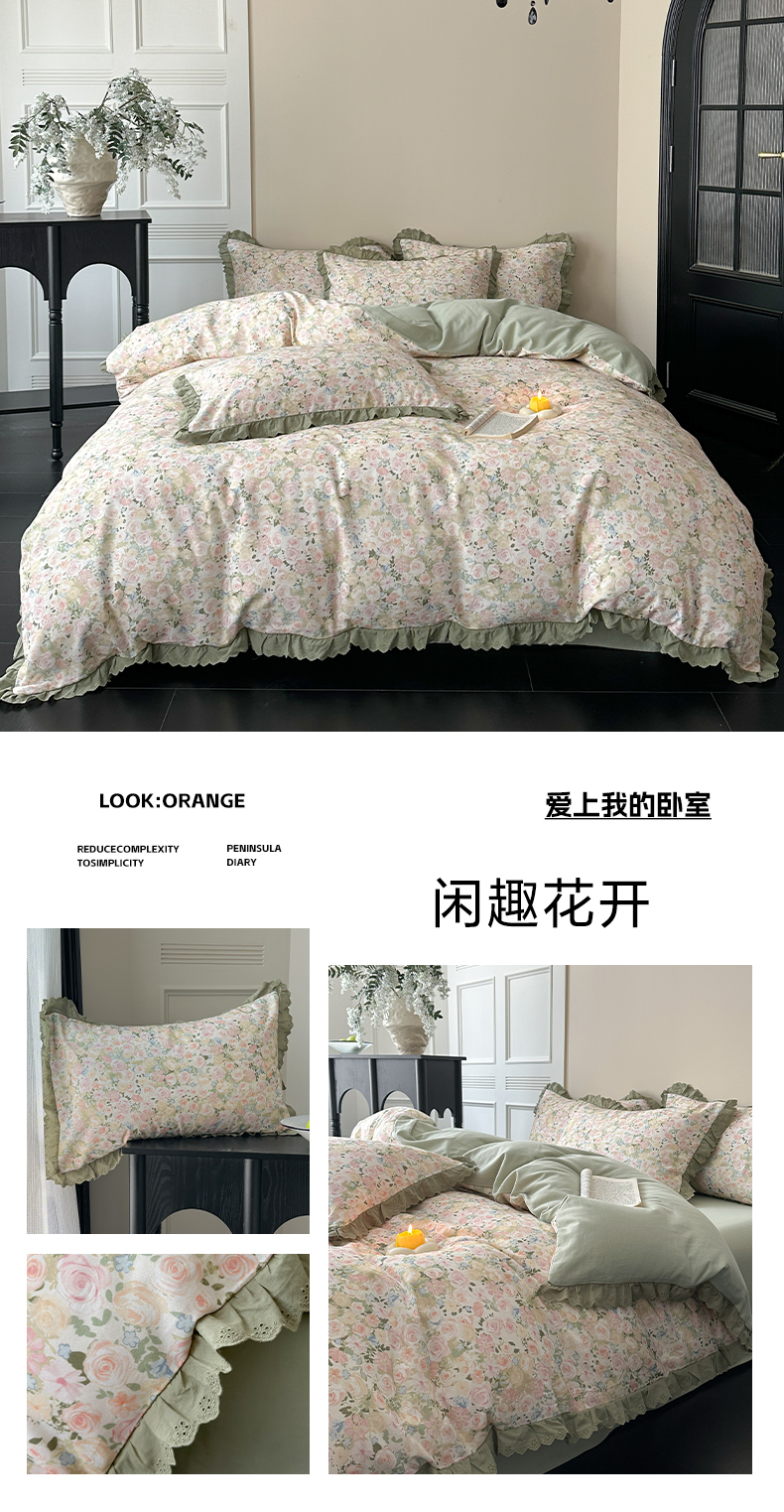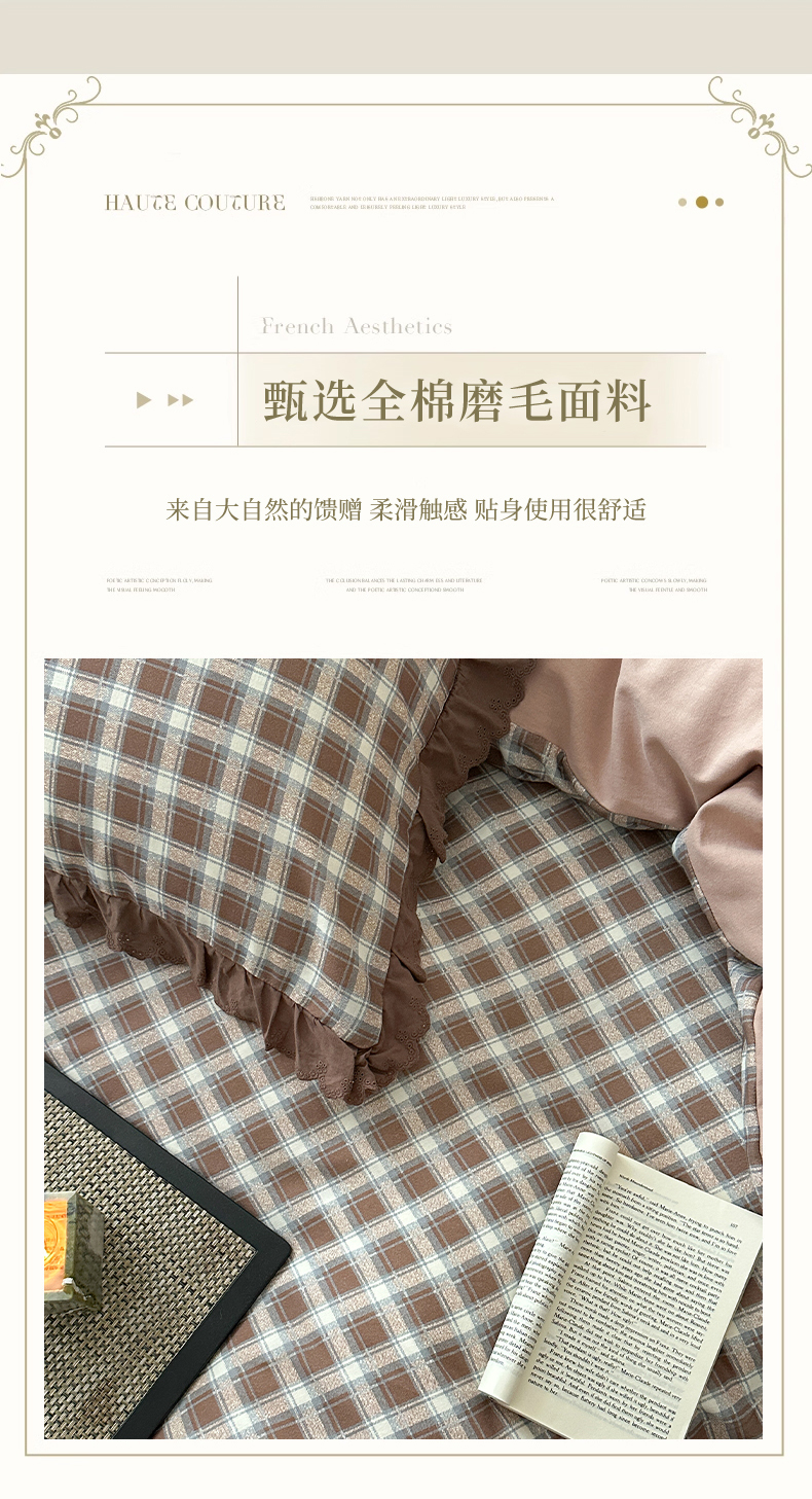 当前位置: 91家纺网 > 商品网购 > 床品套件 > 四件套 > 全棉普通四件套 > 三朵家纺 2025新款秋冬全棉纯棉加厚磨毛法式花边四件套 魅影