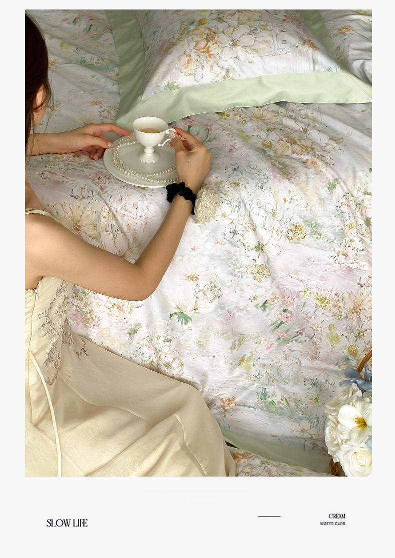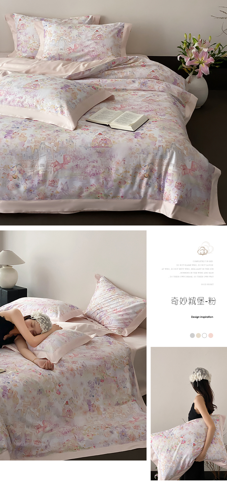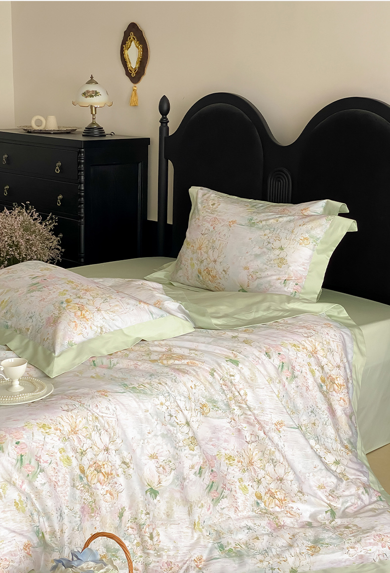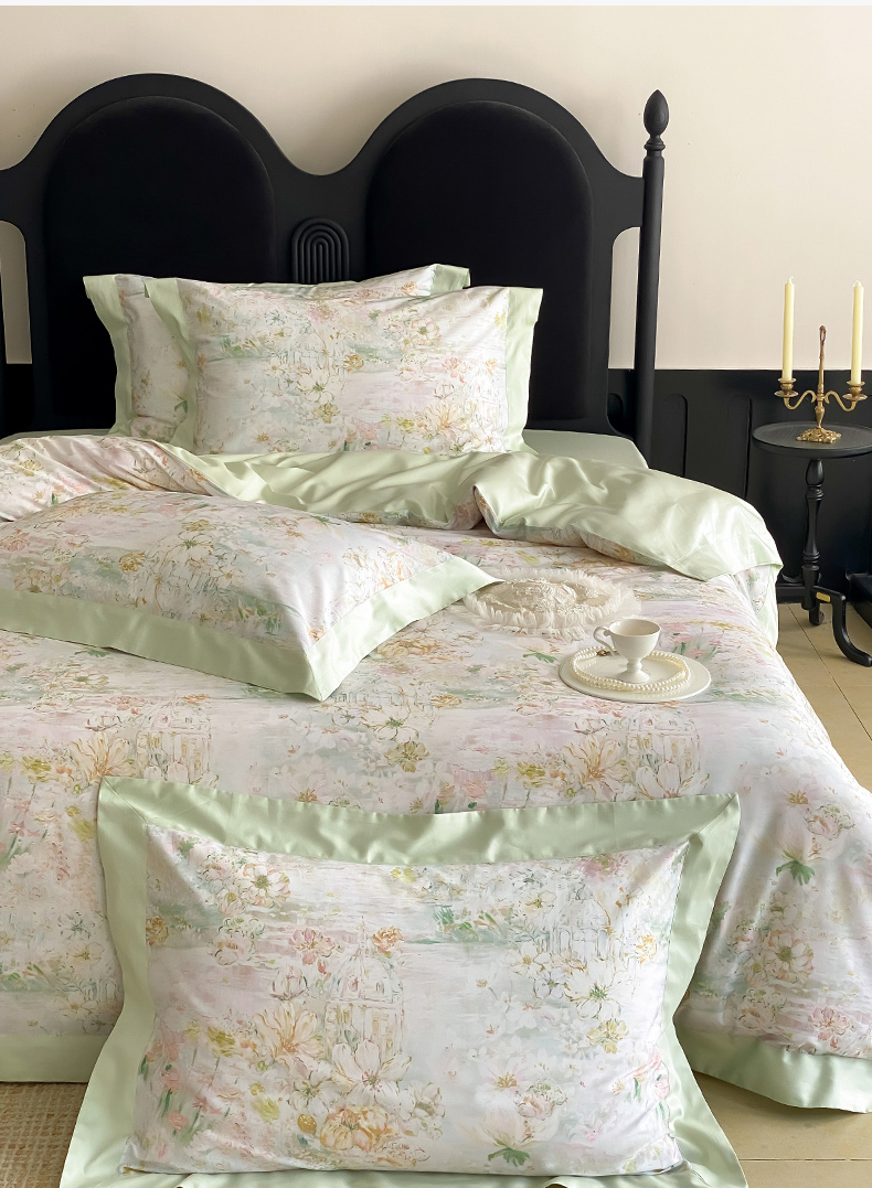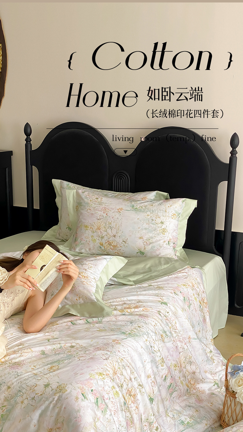 云栖家居 2025全棉纯棉长绒棉纯棉A类50支数码印花系列四件套-春园 花园城堡-绿