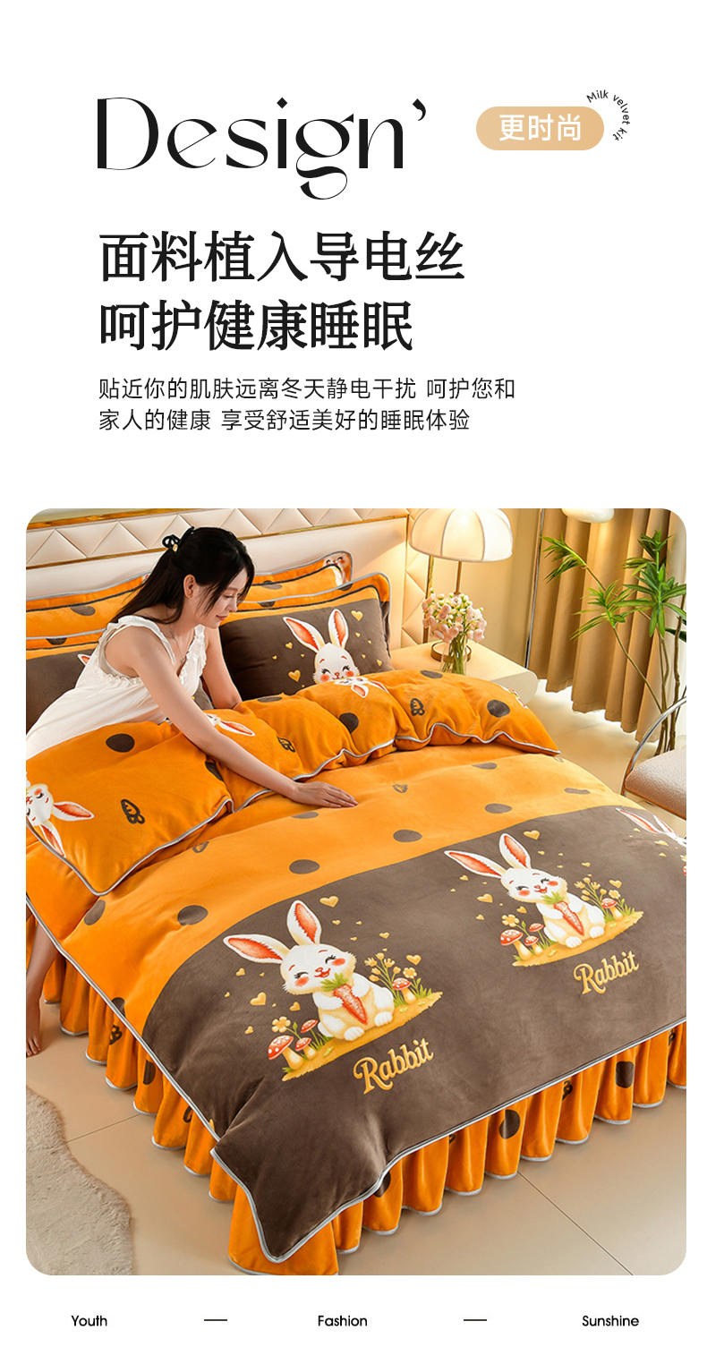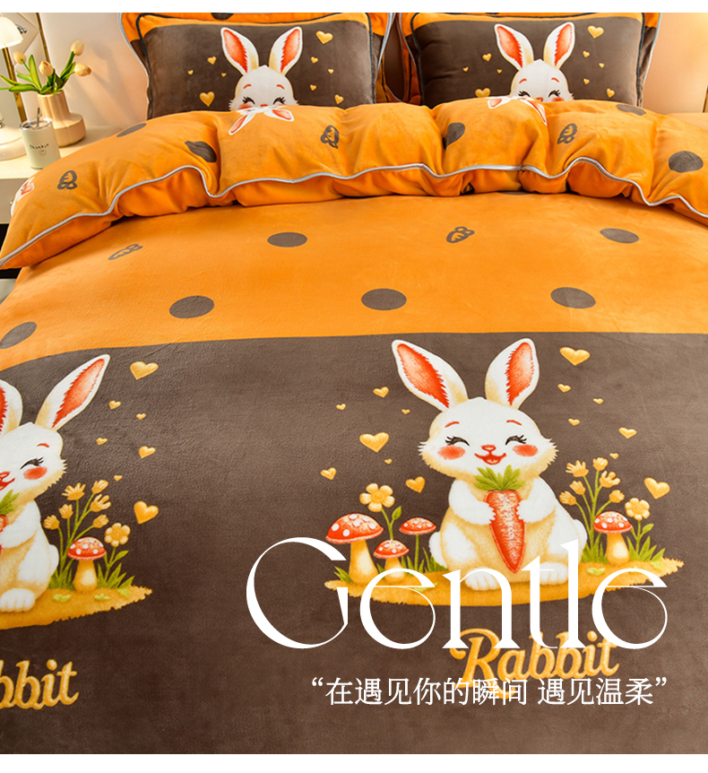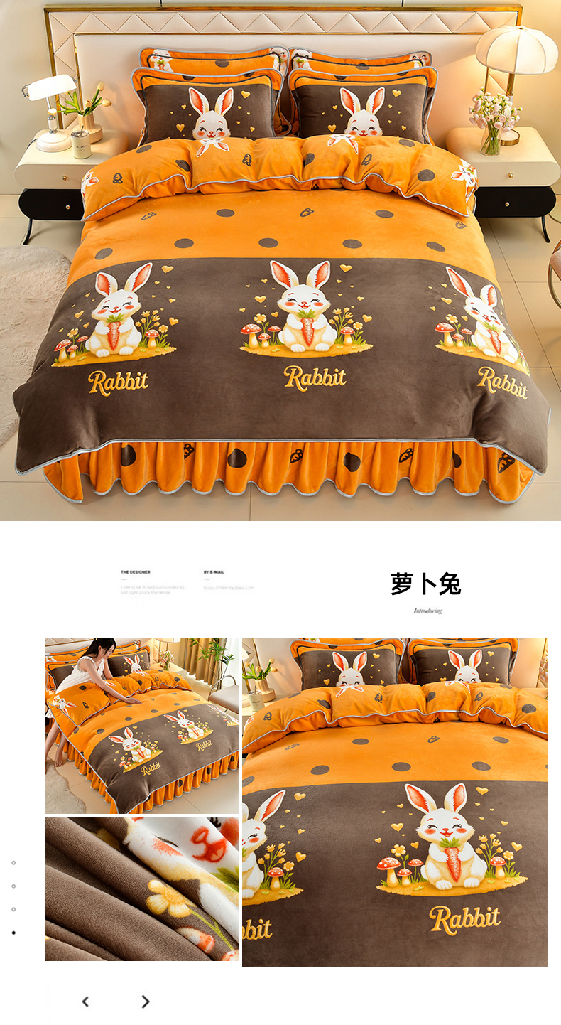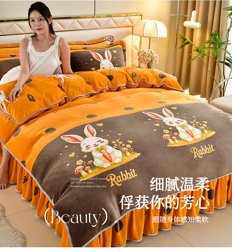 商品名称: 馨梦缘 2025直播爆款8.5斤牛奶绒四件套加厚保暖床裙金貂绒 萝卜兔