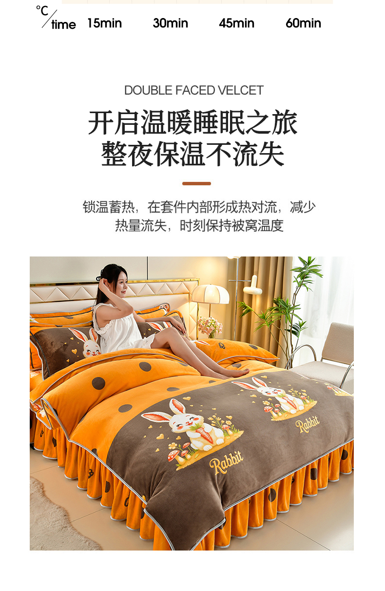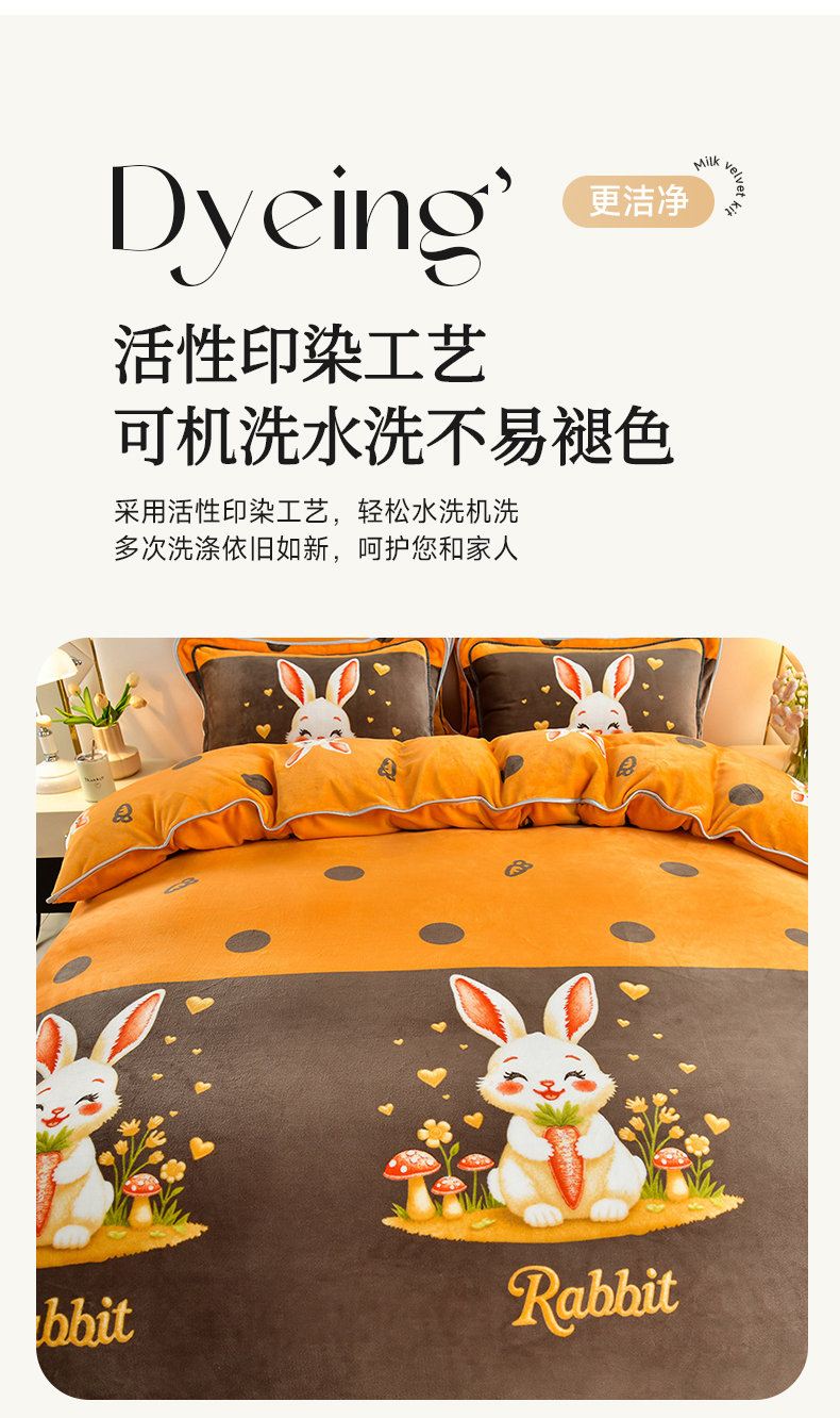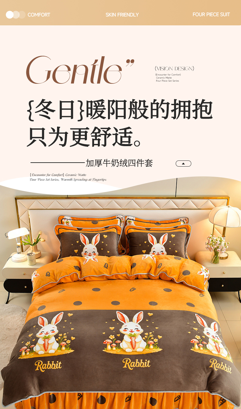 商品名称: 馨梦缘 2025直播爆款8.5斤牛奶绒四件套加厚保暖床裙金貂绒 萝卜兔