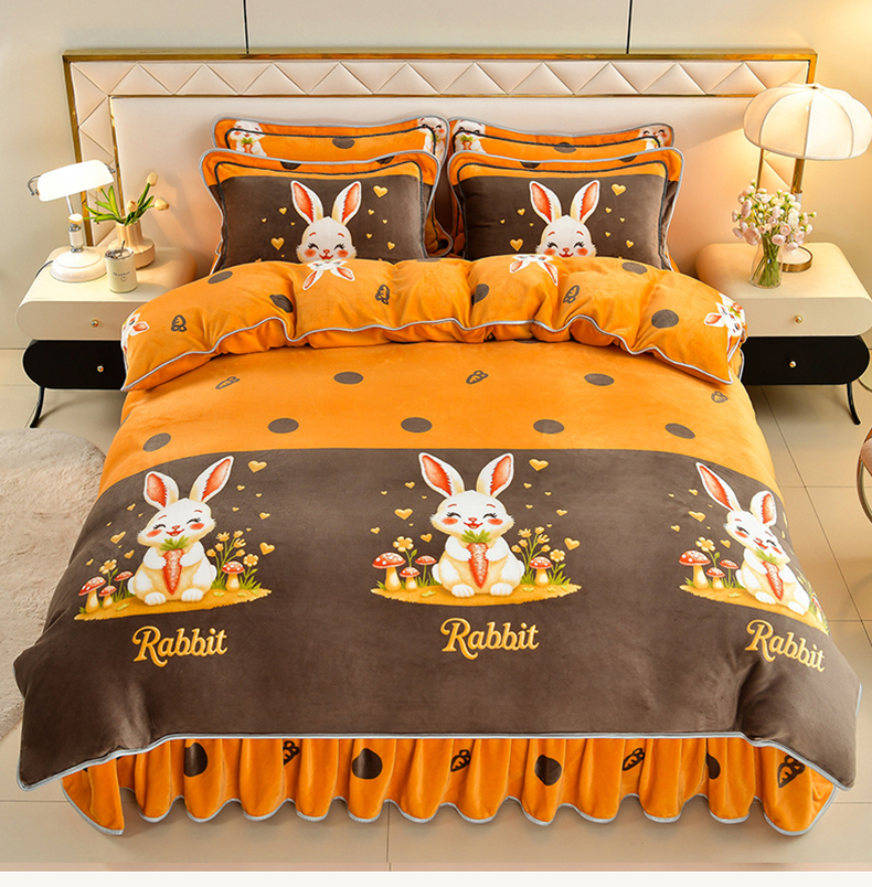 馨梦缘 2025直播爆款8.5斤牛奶绒四件套加厚保暖床裙金貂绒 萝卜兔