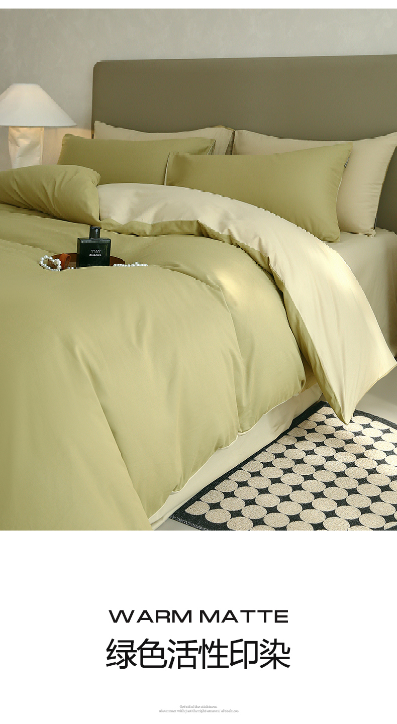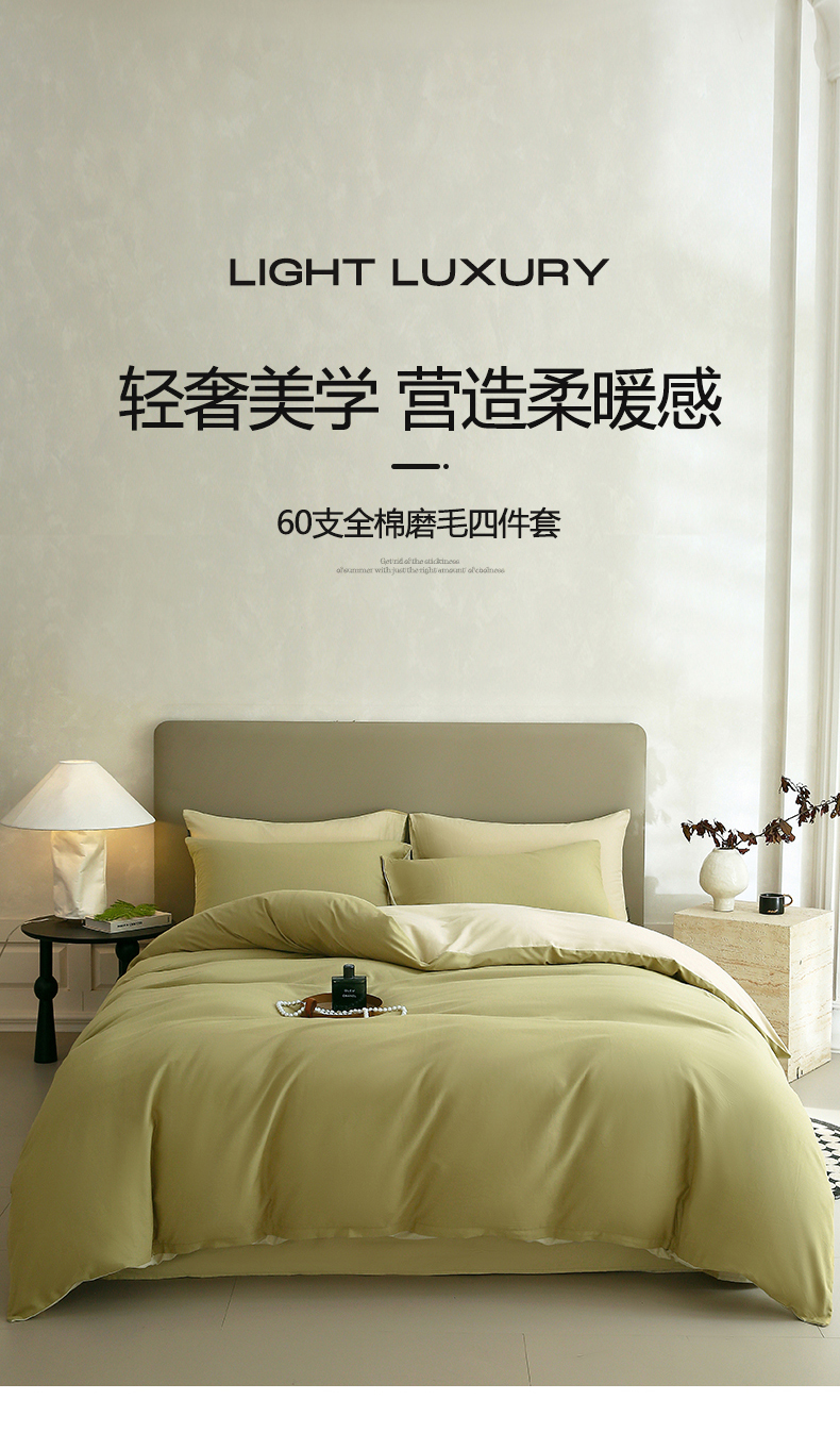 商品名称:宜家坊 2025新款A类60支长绒棉纯色磨毛四件套 抹茶海盐