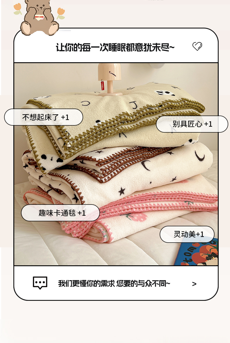 (总)萝莉家纺 2025新款小清新多功能牛奶绒羊羔绒毛毯毯子午睡毯,爱心格子粉,波点狗狗,黑蝴蝶,蝴蝶结兔,花晓绿,花晓玉,花园猫,欢乐熊,咖啡熊,卡通乐园,猫狗一家,萌宠小屋,萌仔派对,茉本玉,奇妙世界,软萌猫黄,软萌猫蓝,圣诞树,甜品屋,兔兔,五彩缤纷,小恐龙,元气满满,做个好梦,组合图仅供展示不可下单
