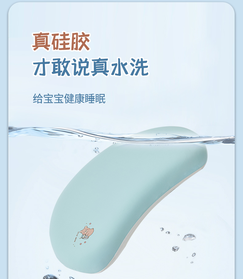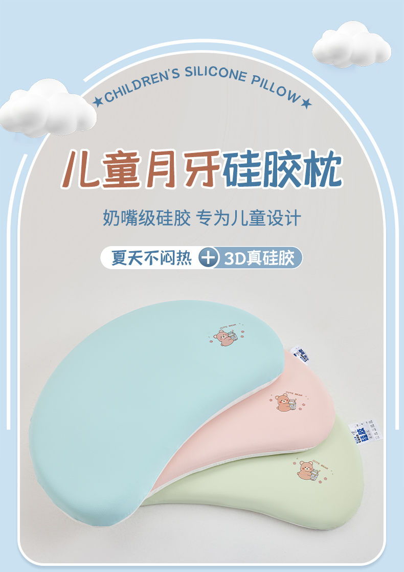(总)唯爱品 2026新款儿童-月牙硅胶枕枕头枕芯,蓝色,粉色,绿色