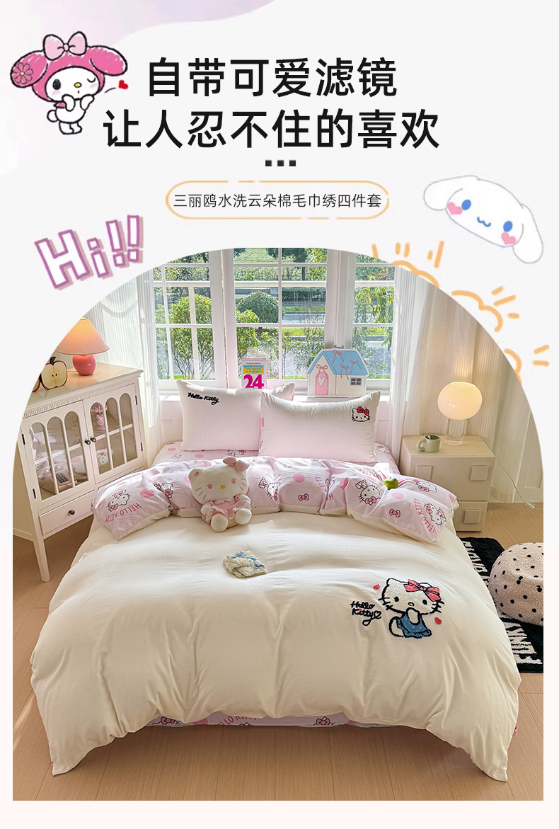 当前位置: 91家纺网 > 商品网购 > 床品套件 > 四件套 > 全棉普通四件套 > 艾特你 2025新款三丽鸥水洗云朵棉毛巾绣四件套-三丽鸥 松鼠美乐-粉