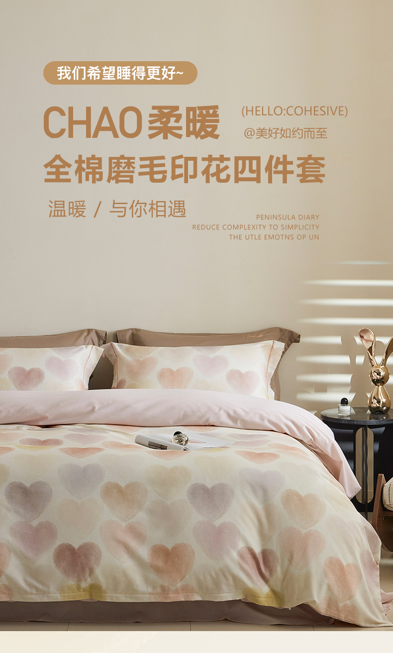 当前位置: 91家纺网 > 商品网购 > 床品套件 > 四件套 > 全棉普通四件套 > XIWEN-希文家纺 2025秋冬新款全棉纯棉生态磨毛印花四件套 馨心-粉