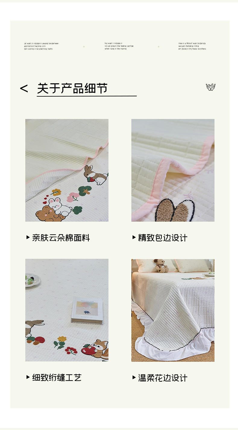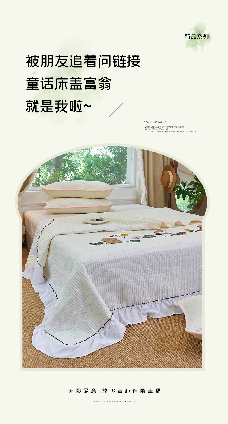 商品名称:(总)鑫喜莱家纺 2025新款云朵棉毛巾绣花边款床盖三件套系列