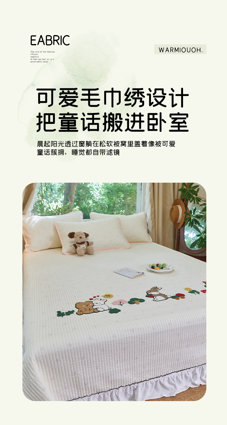 (总)鑫喜莱家纺 2025新款A版纯棉B版牛奶绒床盖毛巾绣系列单件床褥垫软床垫床盖,卡米熊和伙伴,恐龙呆呆,萝卜兔,梦幻小马,小猫伙伴,樱桃小兔,组合图仅供展示不可下单