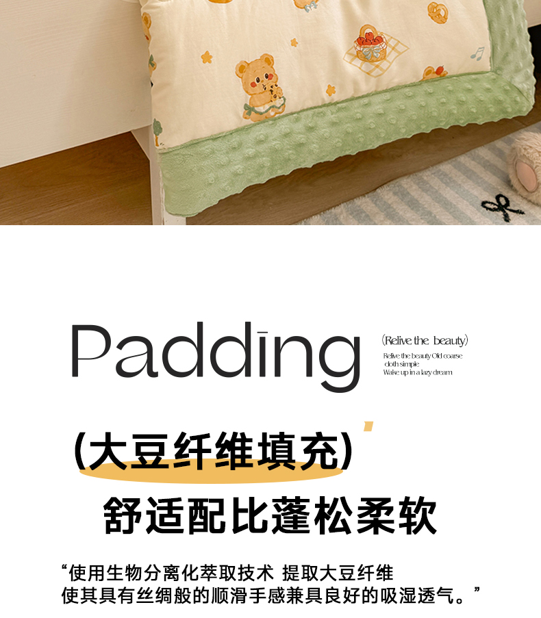 • 填充纤维种类: 大豆蛋白改性聚酯纤维