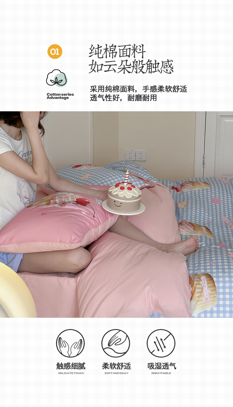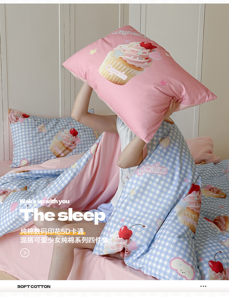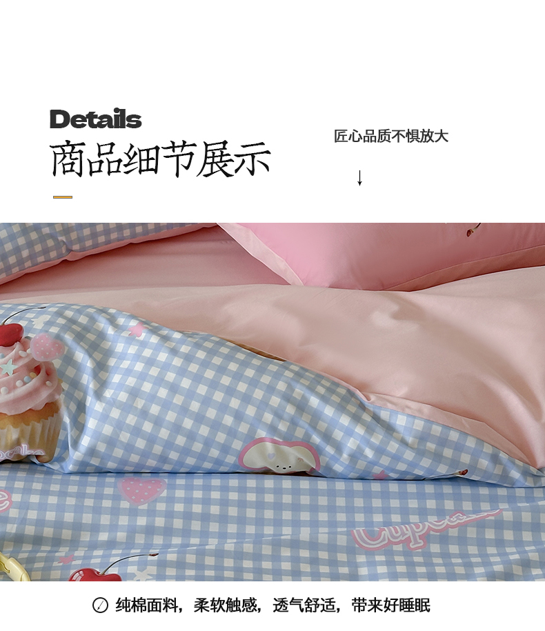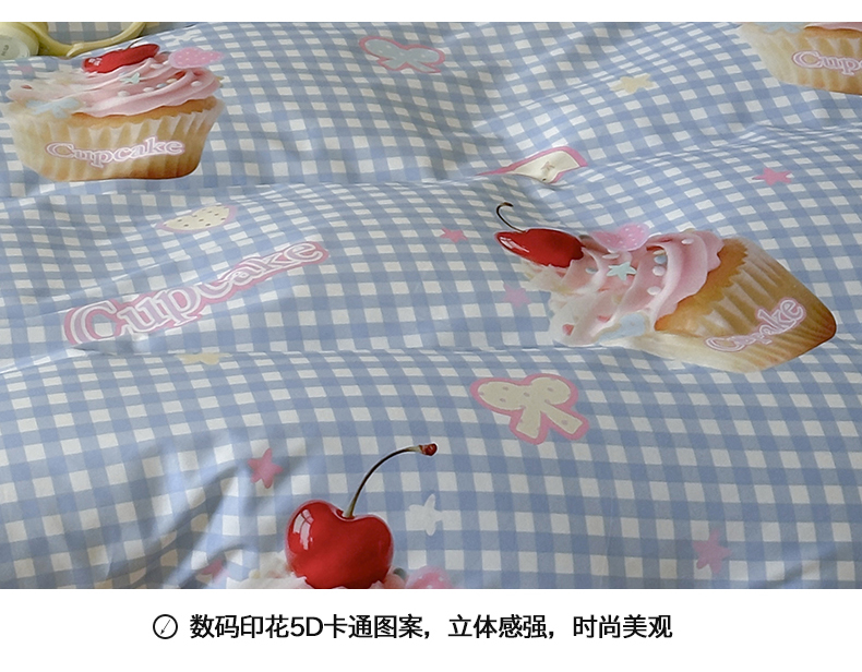 当前位置: 91家纺网 > 商品网购 > 床品套件 > 四件套 > 全棉普通四件套 > 桃子家居 2025新款纯棉数码印花5D卡通混搭可爱少女纯棉系列四件套 棉5D-甜蜜蛋糕蓝