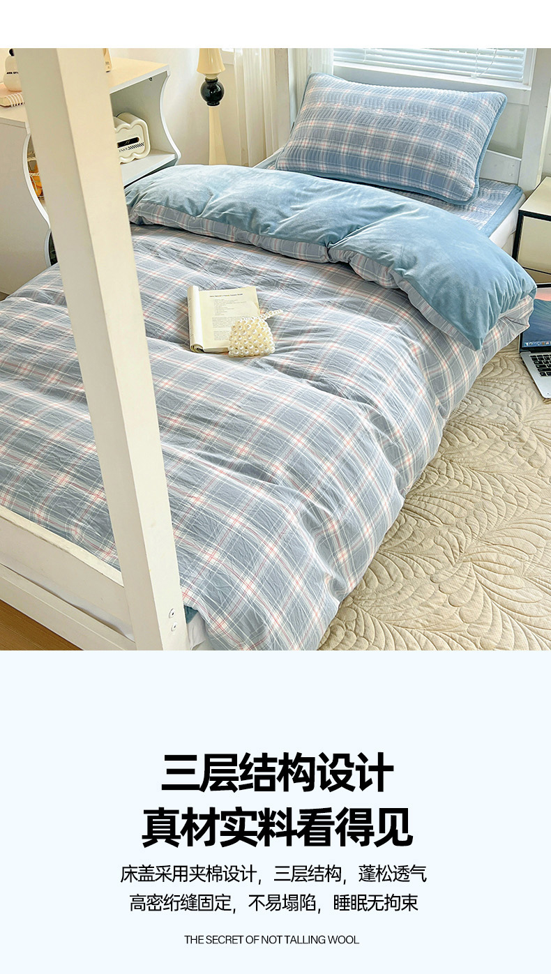 当前位置: 91家纺网 > 商品网购 > 床上用品 > 床盖 > 乐野家居 2025新款开学季 A类全棉水洗棉+宝宝绒学生床盖三件套(多功能被套) 甜心紫
