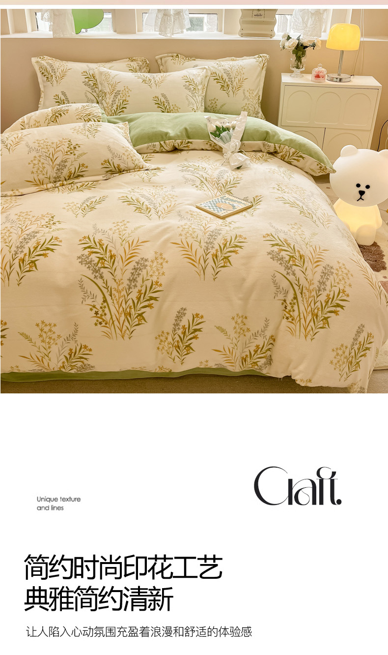当前位置: 91家纺网 > 商品网购 > 床品套件 > 四件套 > 牛奶绒四件套 > 眠博士 2025新款烂花牛奶绒印花牛奶绒加厚保暖简单款四件套 简单款-青叶飘逸-绿