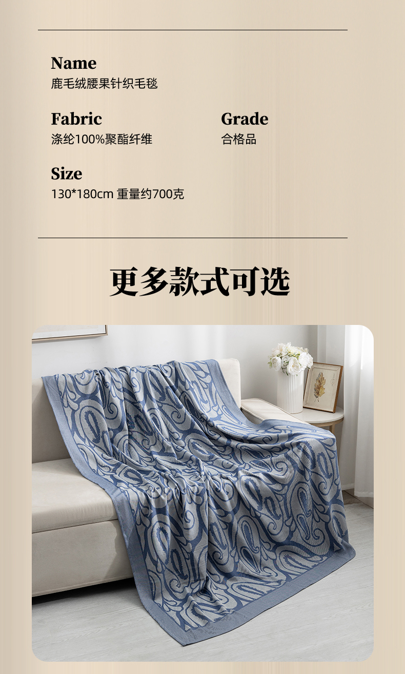 商品名称:悦织湾家纺 2025新款鹿毛绒针织毛毯航空毯空调毯四季毯轻奢时尚休闲毯办公室午睡毯 鹿毛绒卡其人字纹