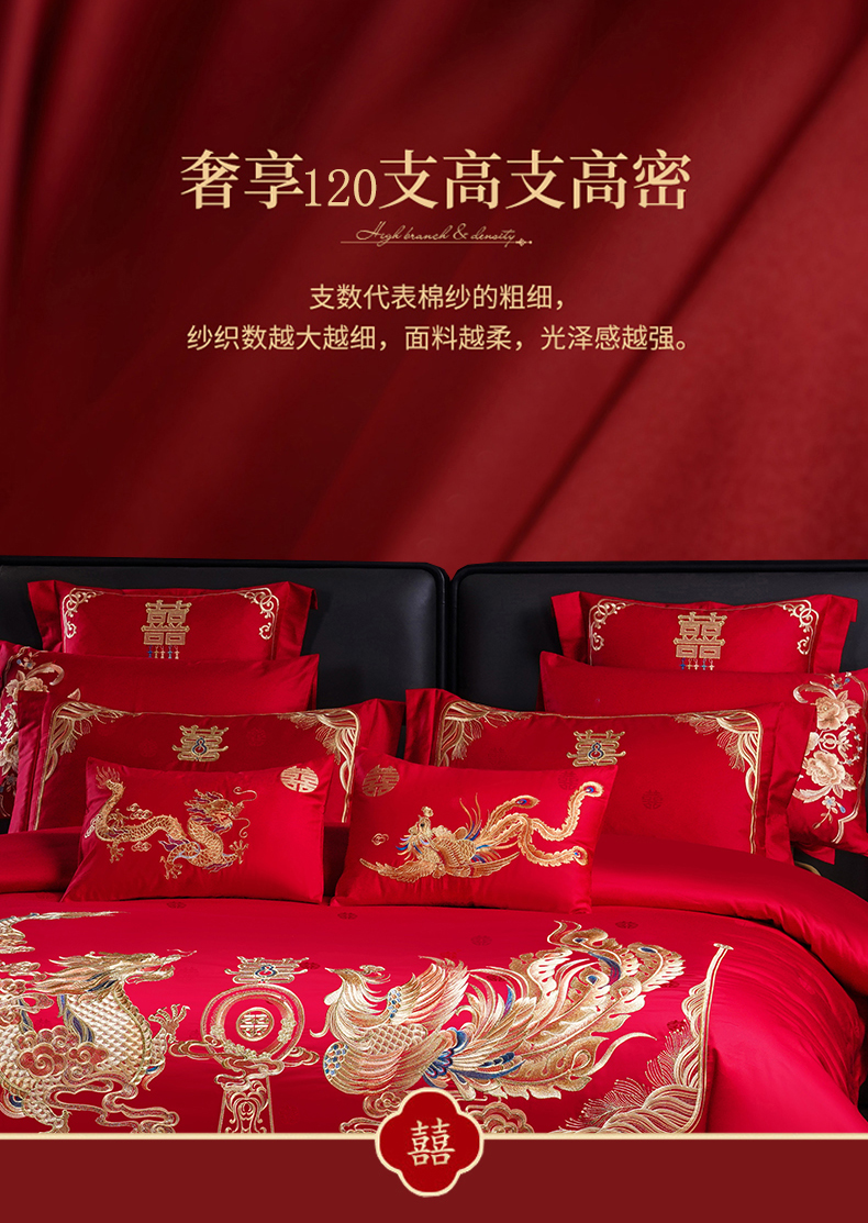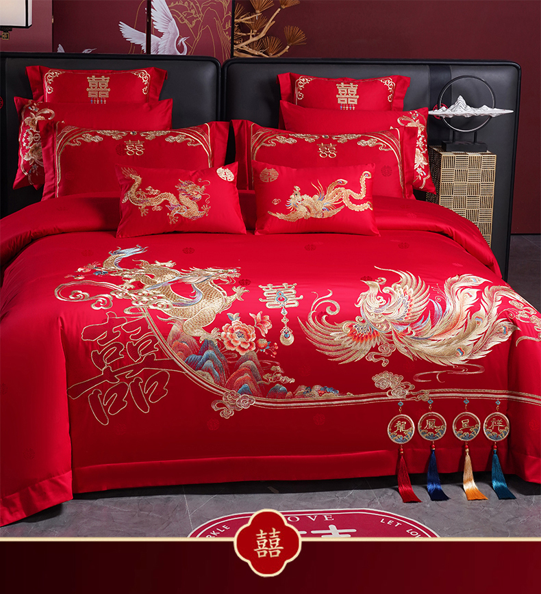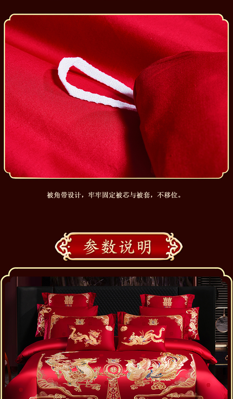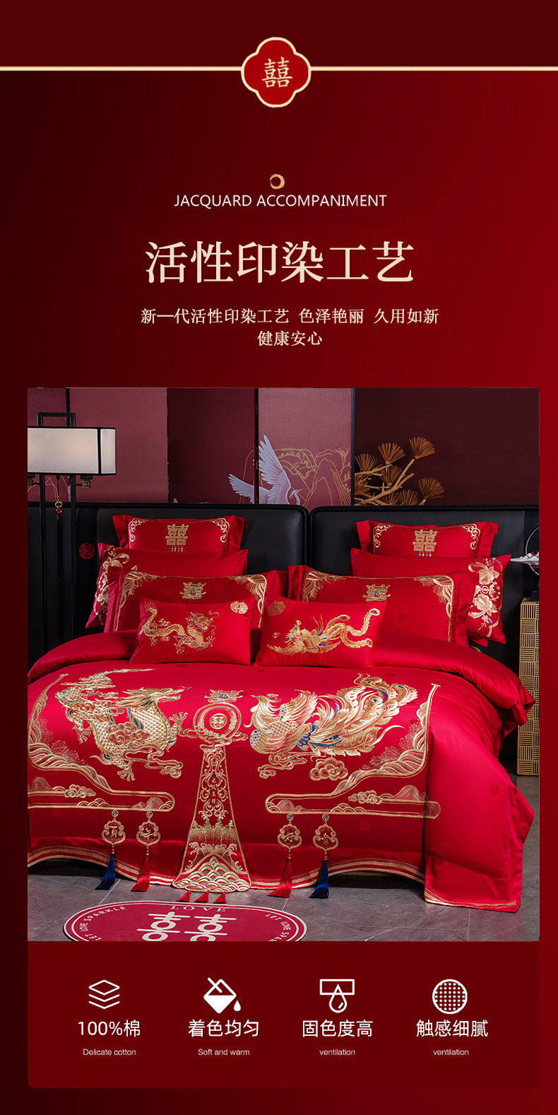 当前位置: 91家纺网 > 商品网购 > 床品套件 > 多件套 > 多件套 > 千禧家纺 2025新款双面长绒棉提花工艺重工刺绣婚庆多件套 龙章凤姿
