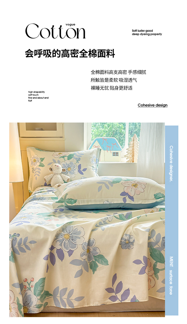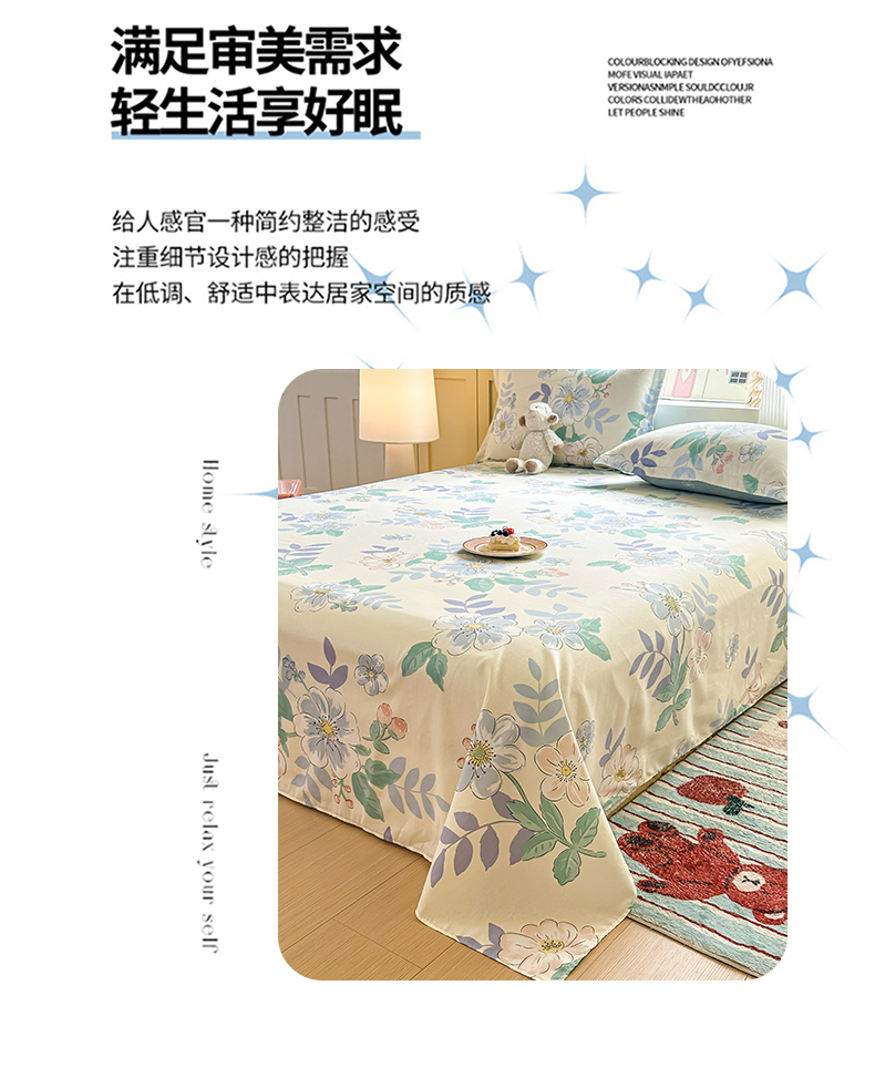 • 91家纺网 家纺一手货源 找家纺 帛织澜家纺 2025新款12868全棉喷气印花床单单件 花漾星辰-A版