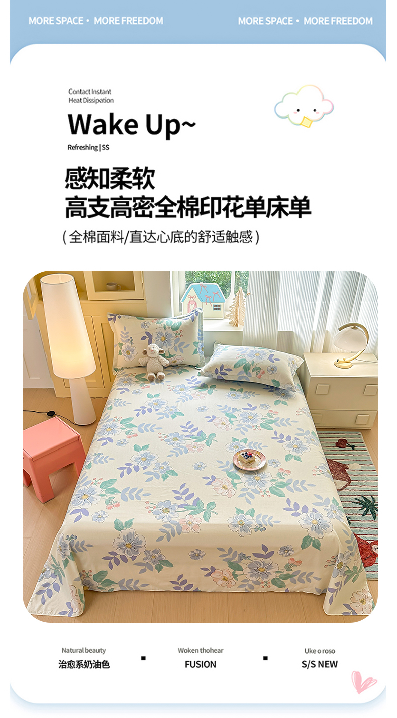 帛织澜家纺 2025新款12868全棉喷气印花床单单件 花漾星辰-A版