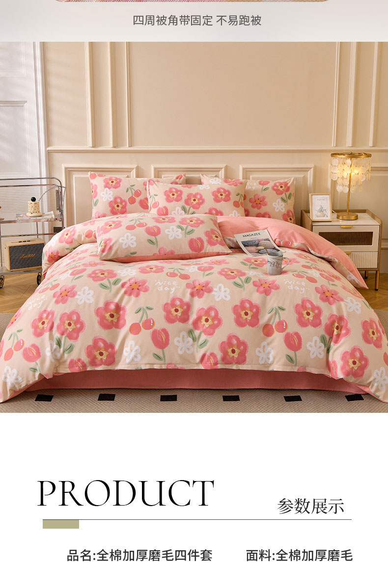 商品名称:(总)宇彬家纺 2025直播热新款秋冬全棉四件套精梳生态原棉印花加厚磨毛轻奢铂金床单床笠款三四件套