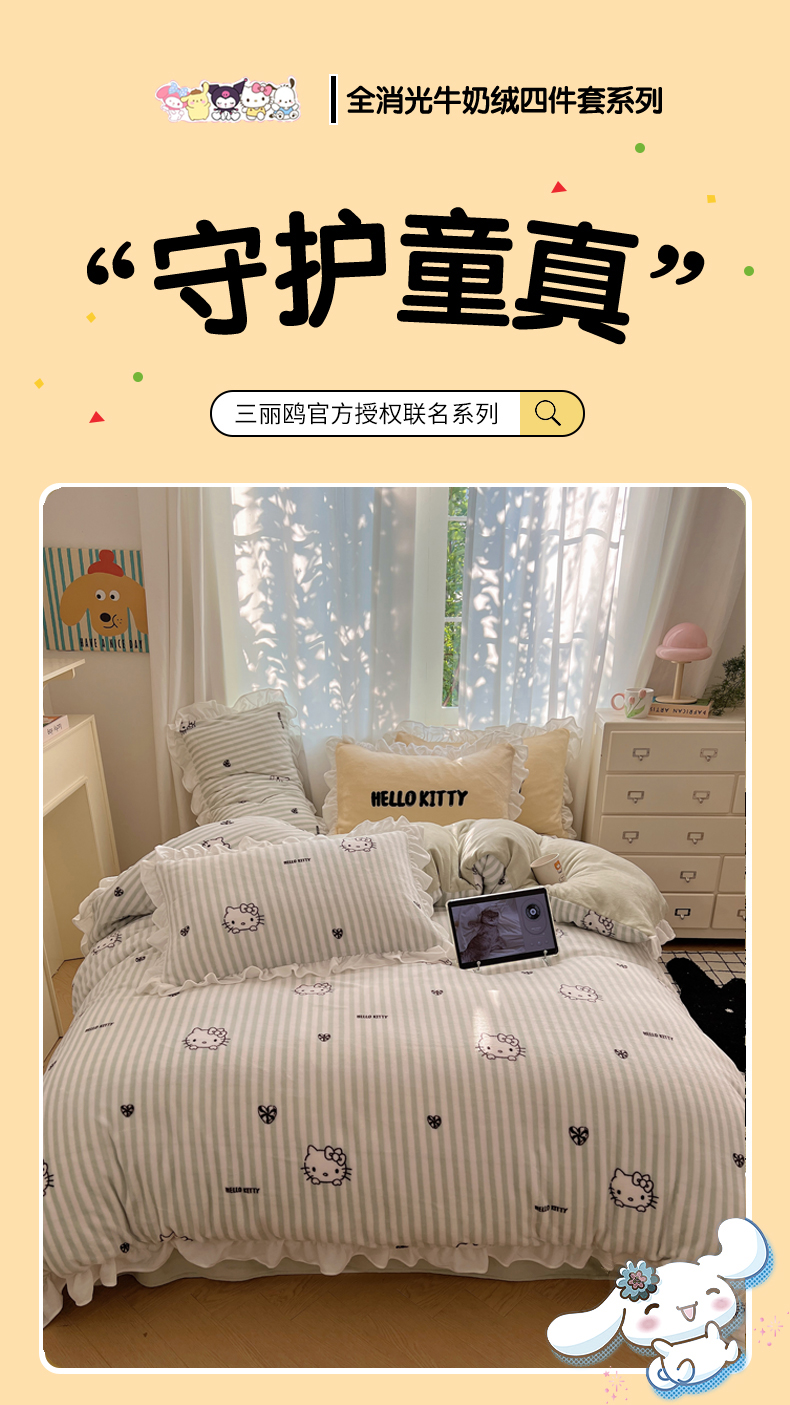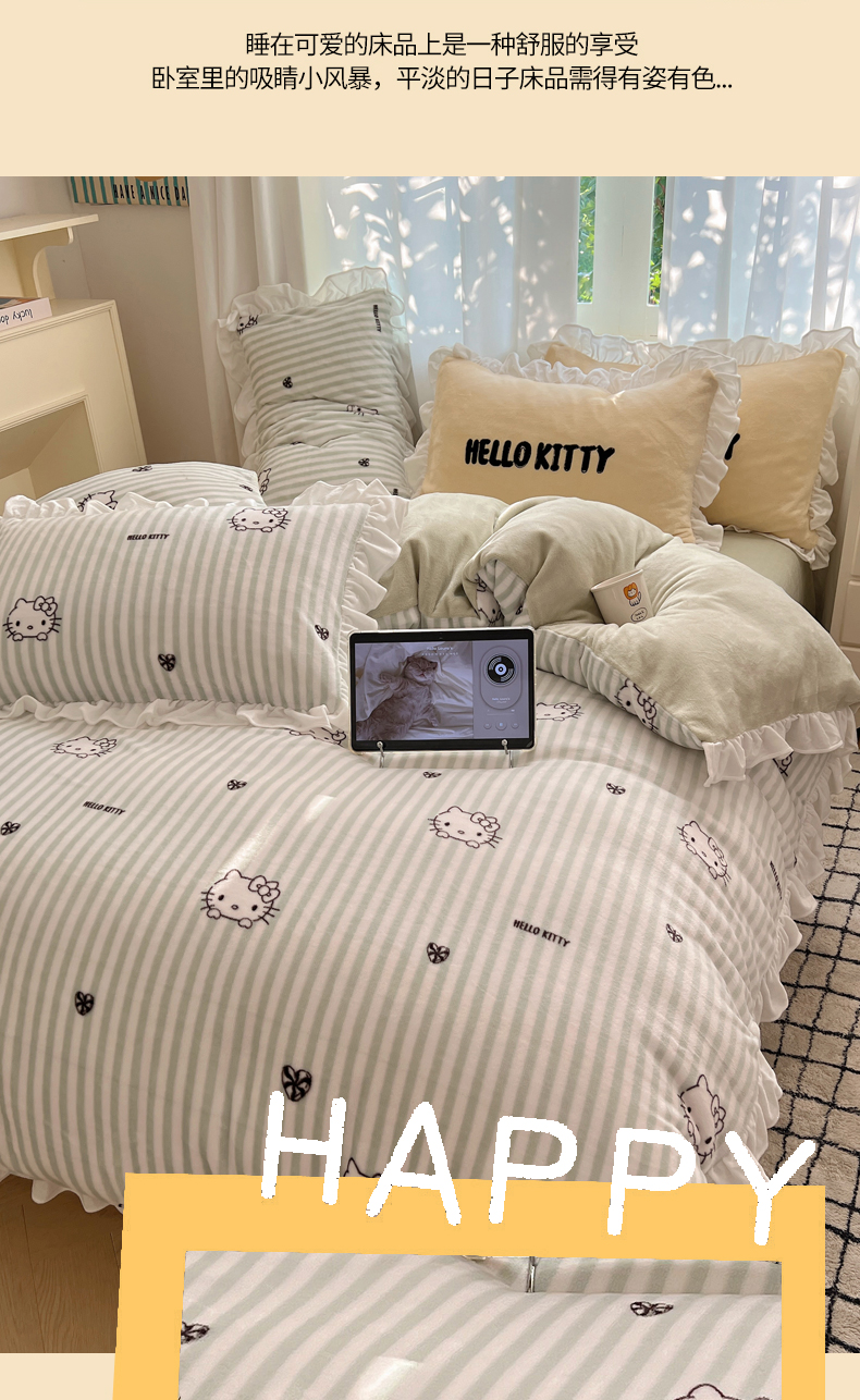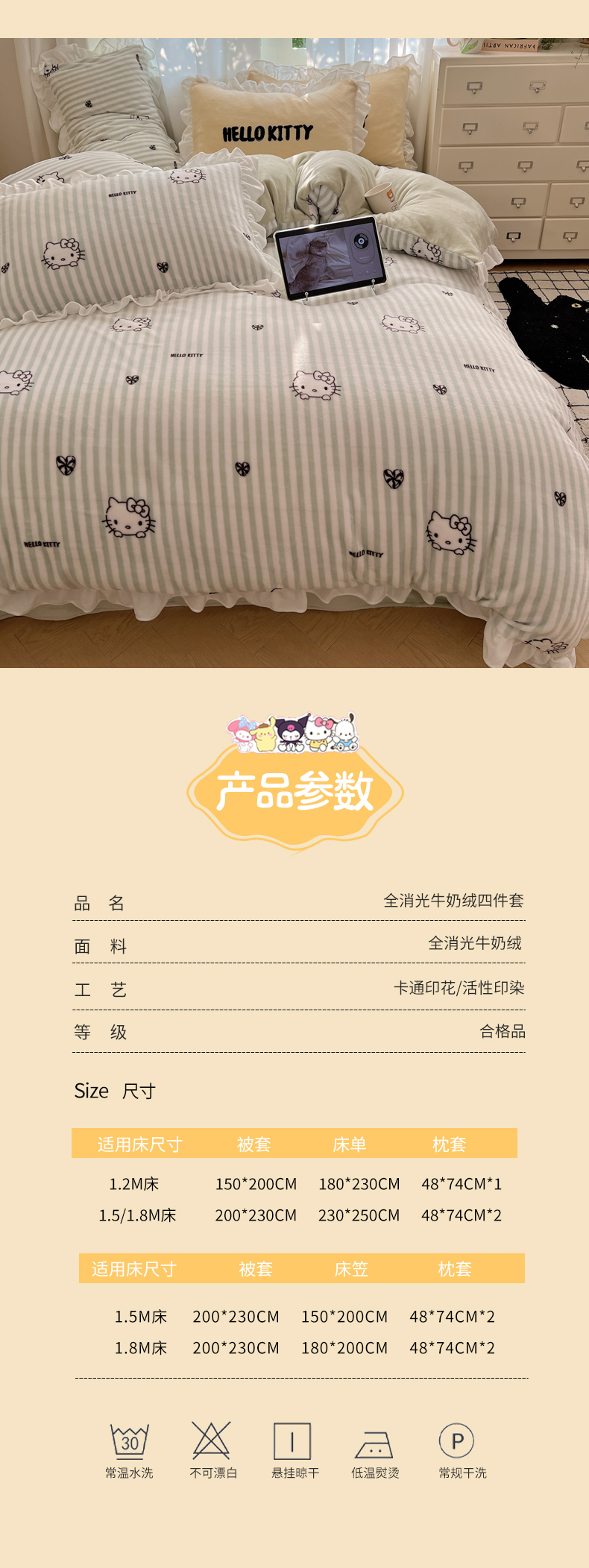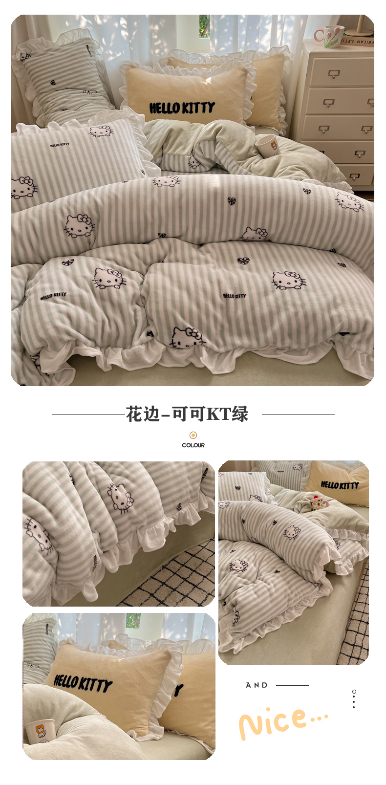 当前位置: 91家纺网 > 商品网购 > 床品套件 > 四件套 > 牛奶绒四件套 > 三朵家纺 2025新款牛奶绒三丽鸥花边四件套 花边系列 花边-可可KT绿