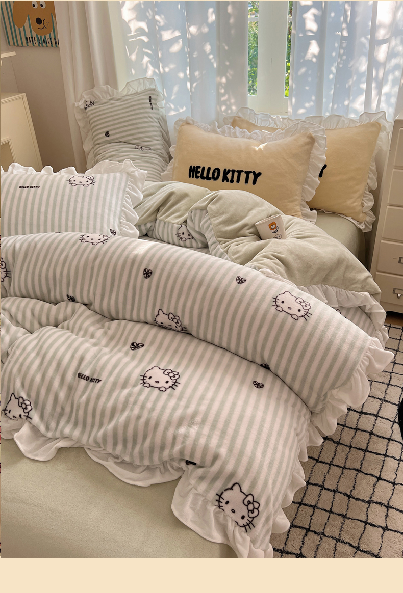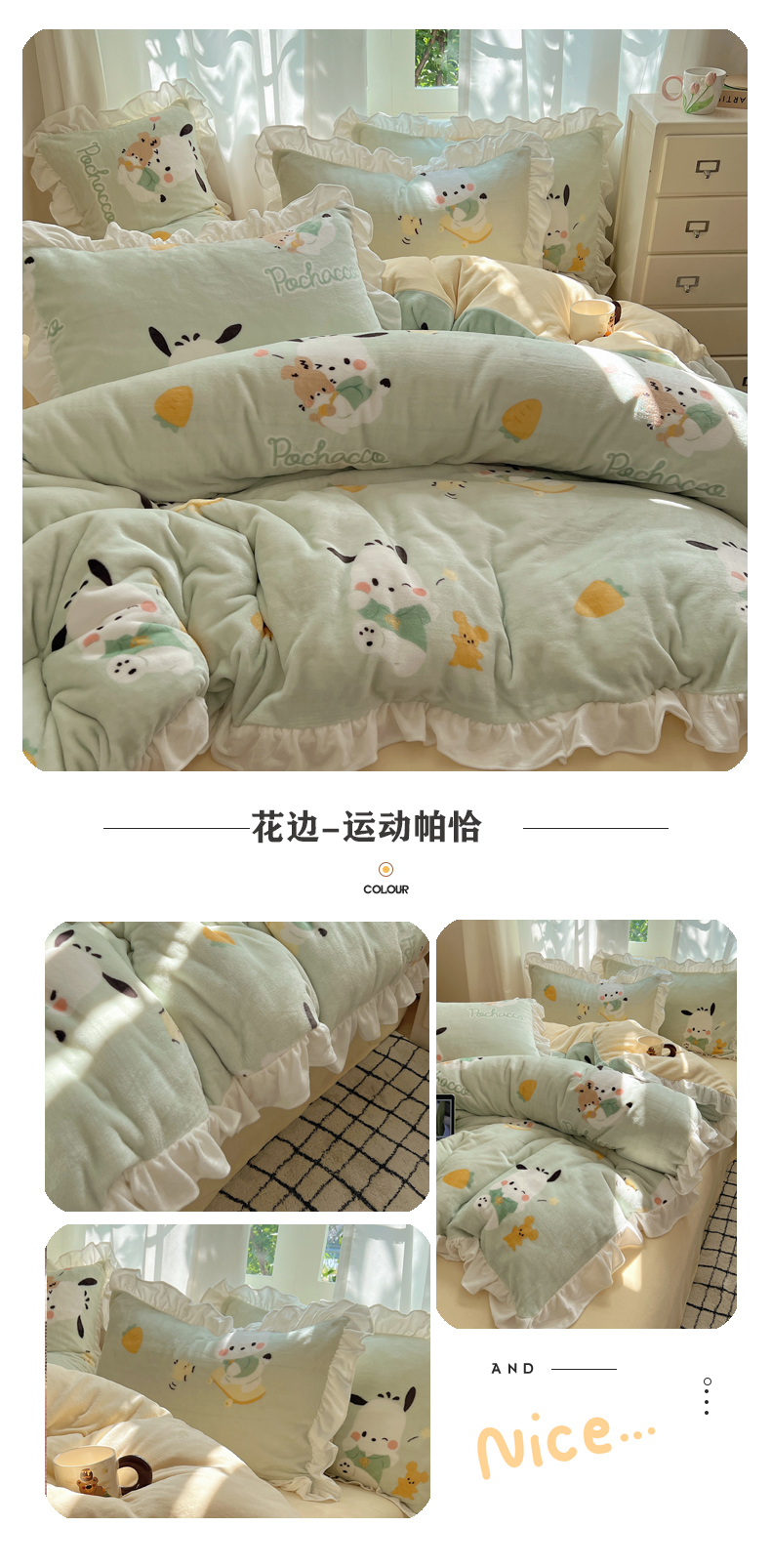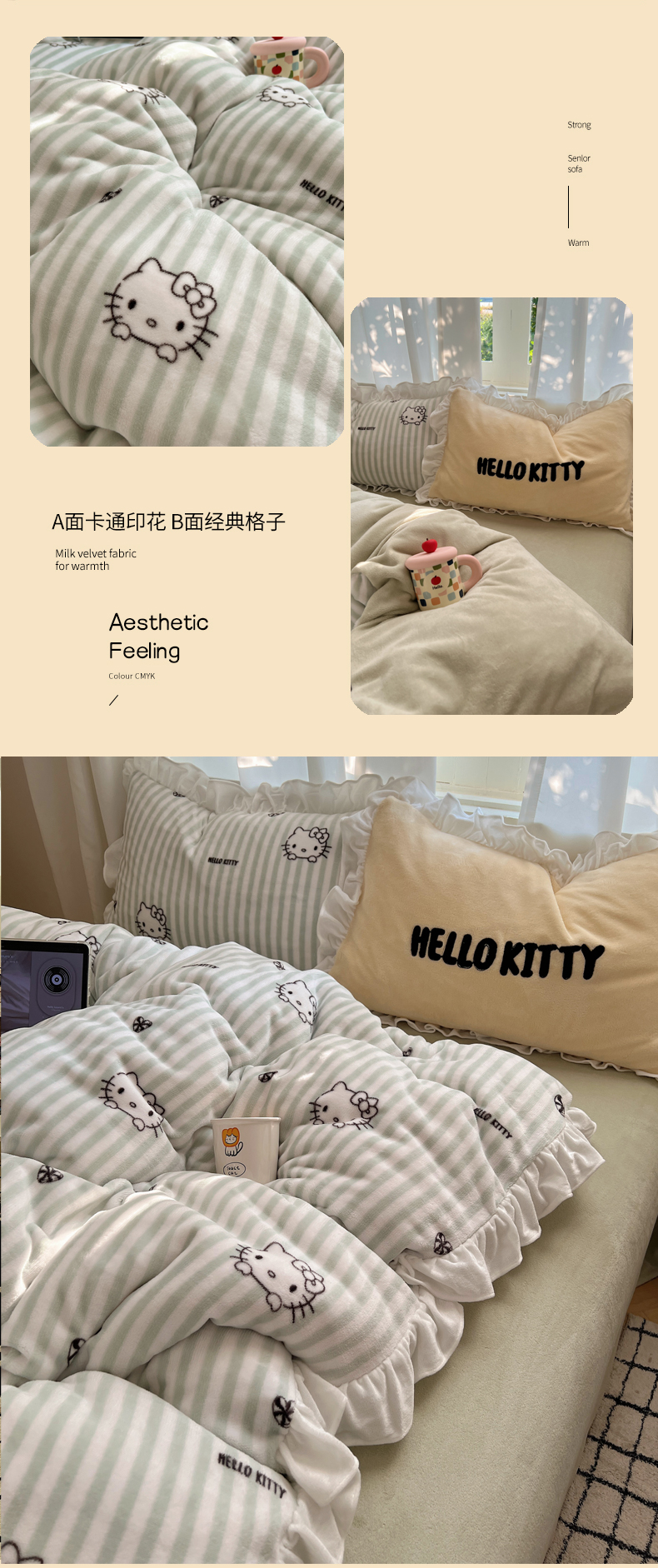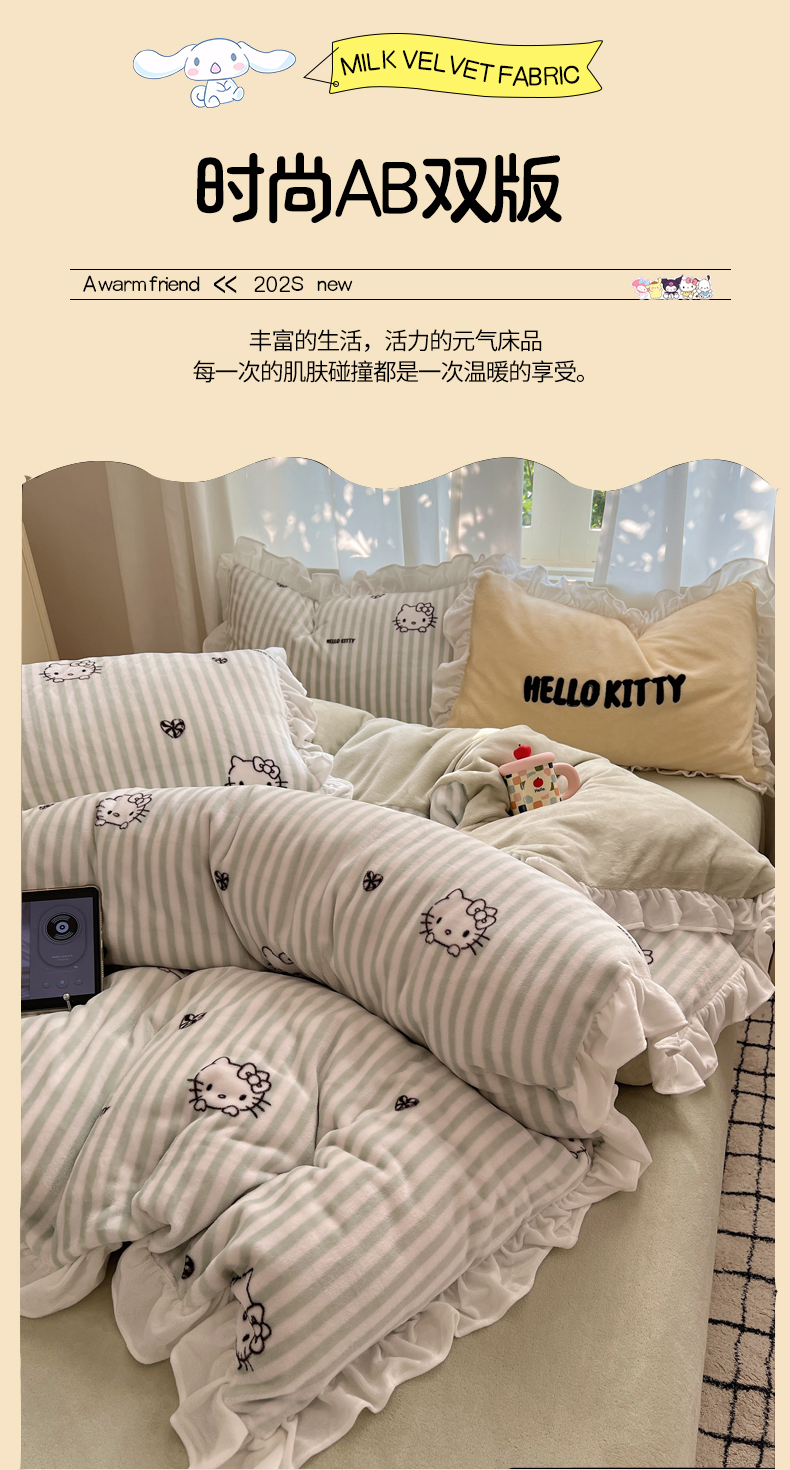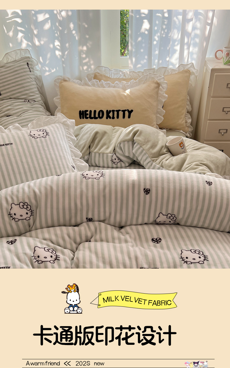 当前位置: 91家纺网 > 商品网购 > 床品套件 > 四件套 > 牛奶绒四件套 > 三朵家纺 2025新款牛奶绒三丽鸥花边四件套 花边系列 花边-可可KT绿