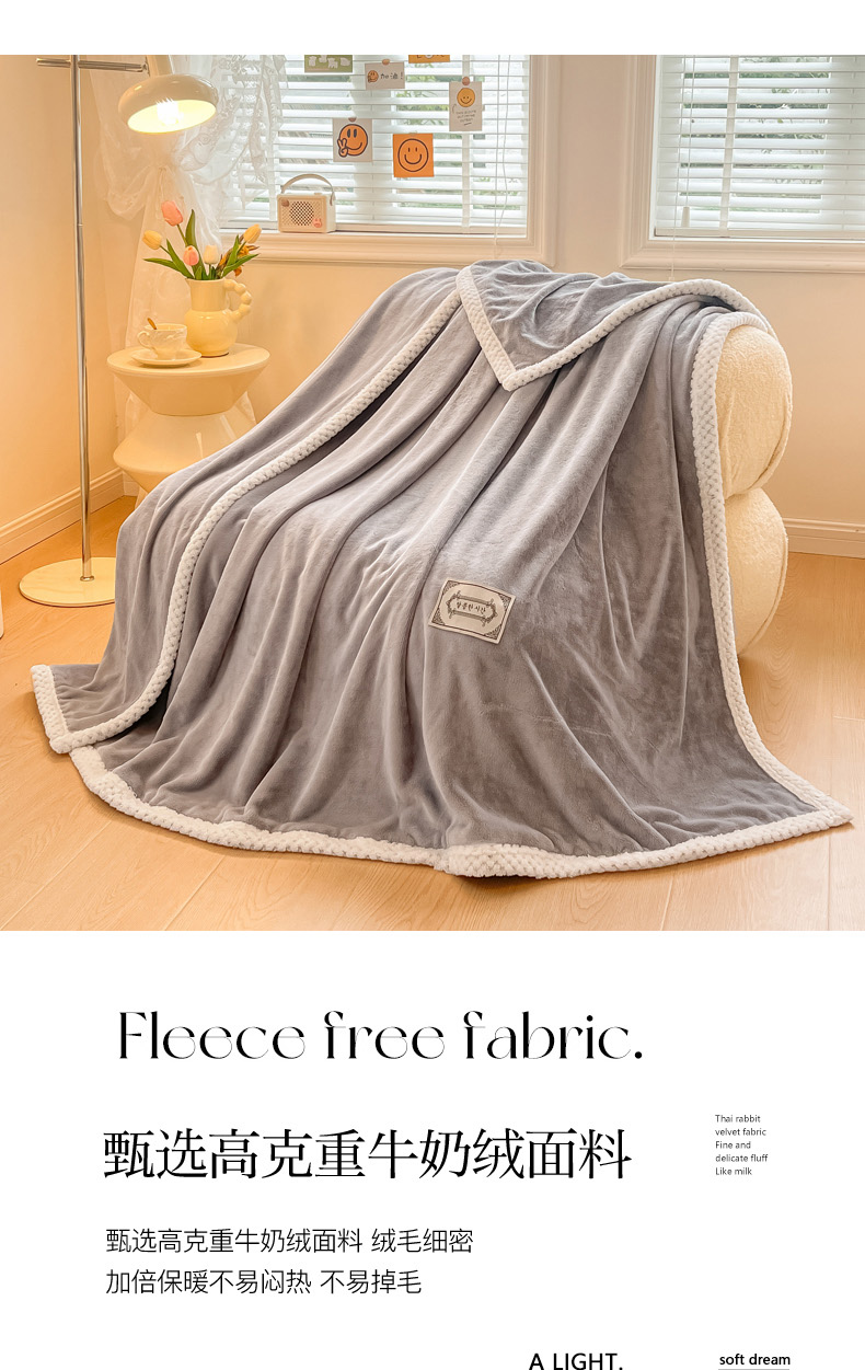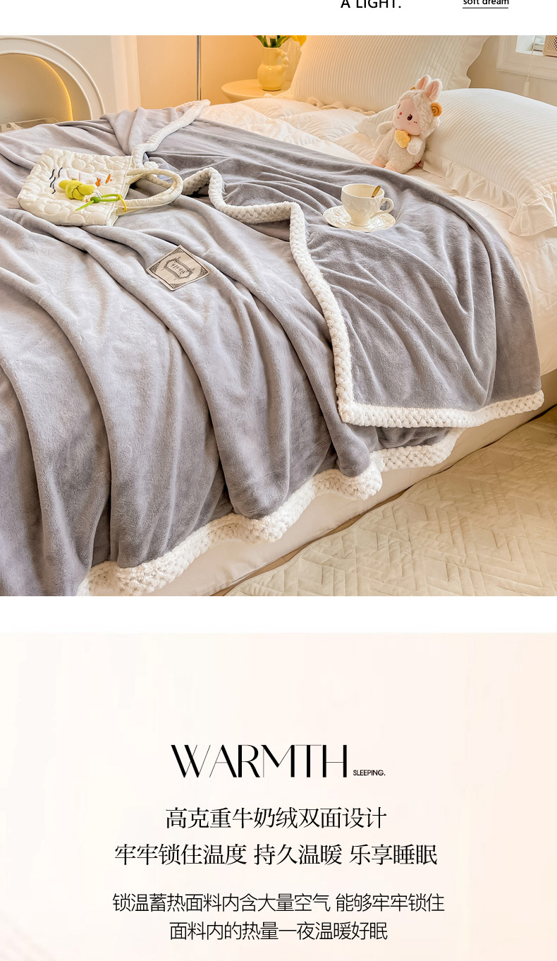 当前位置: 91家纺网 > 商品网购 > 毛毯休闲毯绒毯 > 毛毯 > 眠博士 2025新款高克重牛奶绒轻奢大包边毛毯被套 轻奢毛毯-浅灰