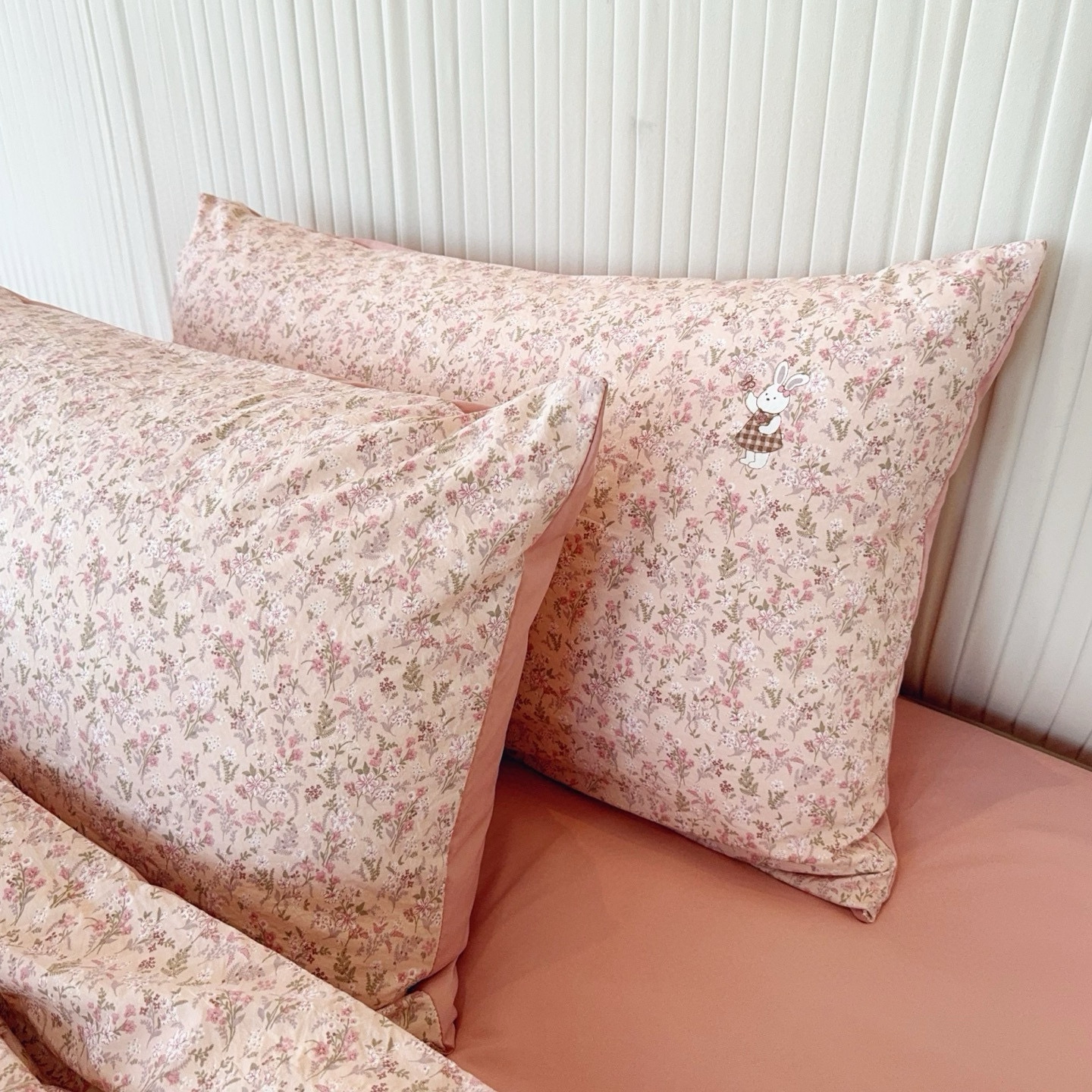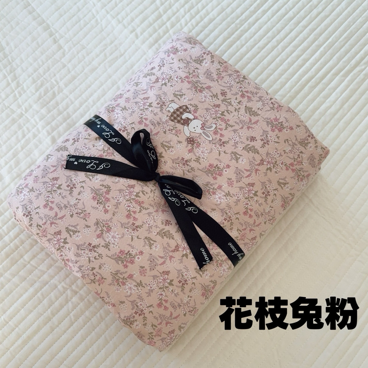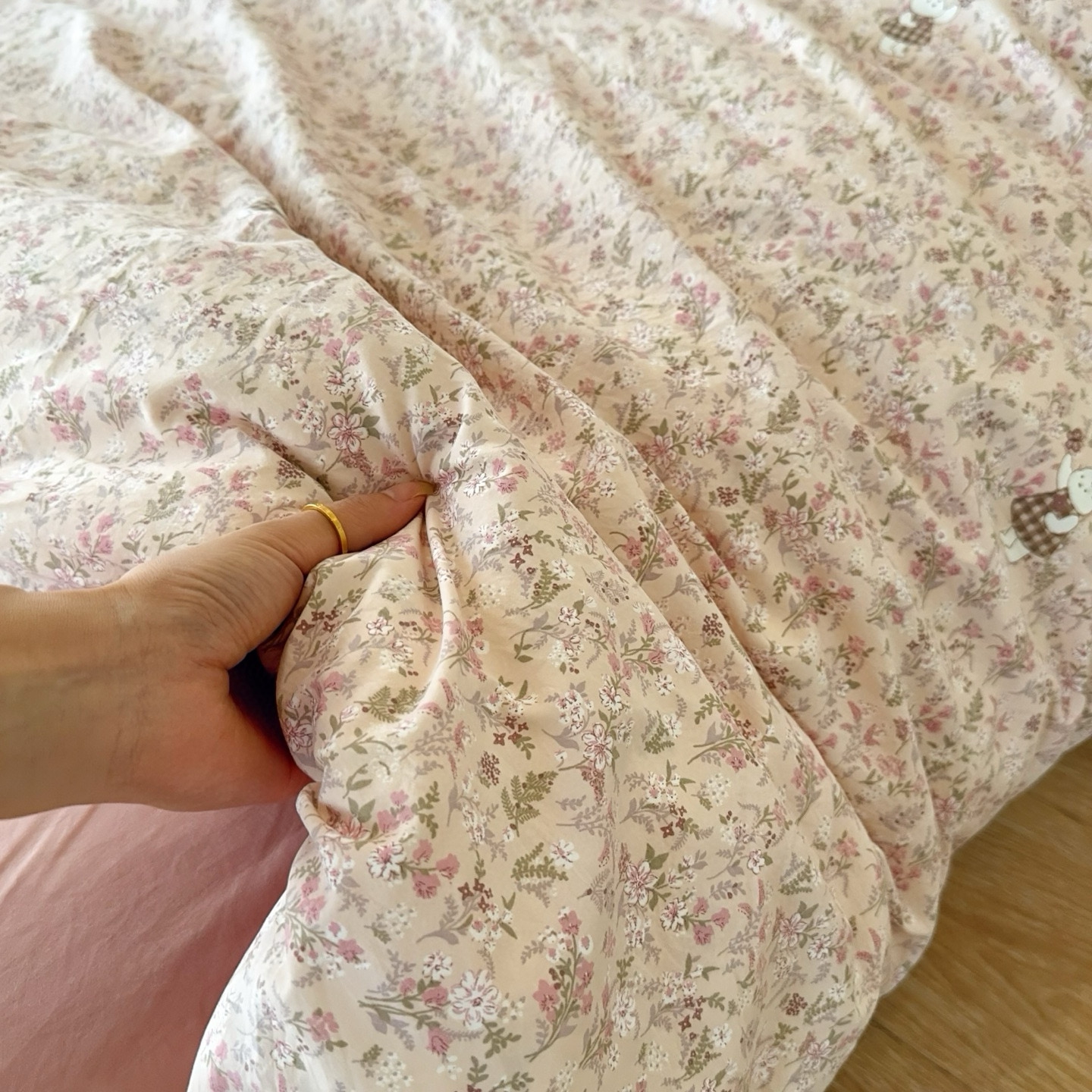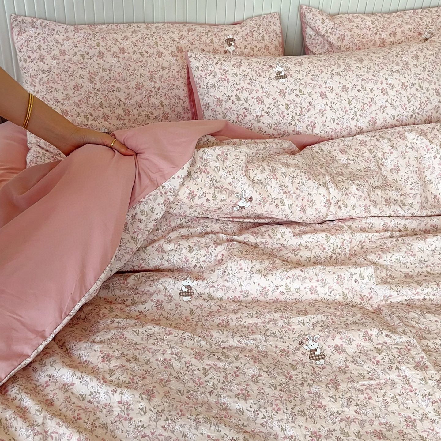 兜米家居 2025新款古法水洗棉印花小清新四件套 花枝兔粉