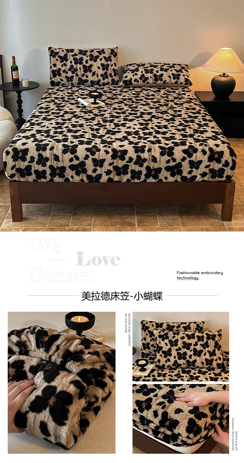 子曰 2025新款加厚美拉德兔绒床笠 美拉德-小蝴蝶