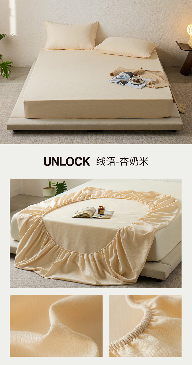 千朵森 2025新款全棉纯棉提花磨毛床笠单品床笠单件单床笠 线语—杏奶米