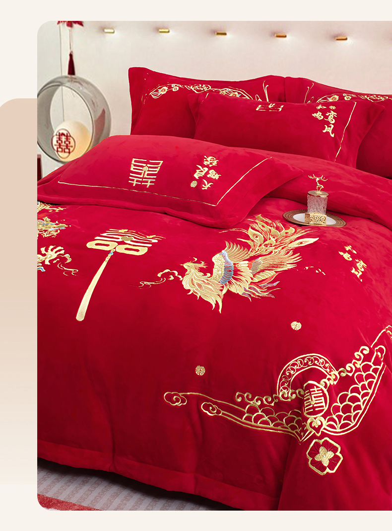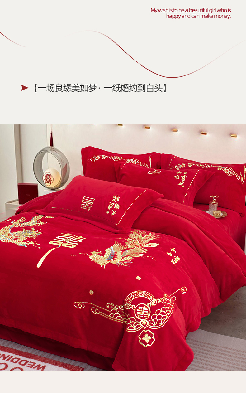(总)千禧家纺 2025新款加厚高克重全消光牛奶绒刺绣婚庆四件套,百年好合(绒),龙凤喜事(绒),早生贵子(绒),缔结良缘,福禧生财,龙凤赐福,龙吟凤舞,喜嫁龙凤,喜临门