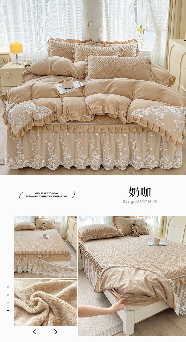 (总)家之硕家纺 2025新款雕花牛奶绒床裙款四件套,繁枝,黑玫瑰,蔓延之境 -咖,蔓延之境-黑,梦蝶,一支玫