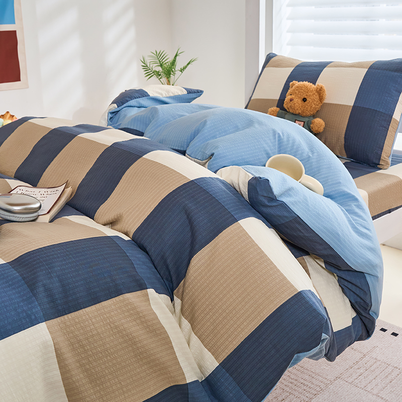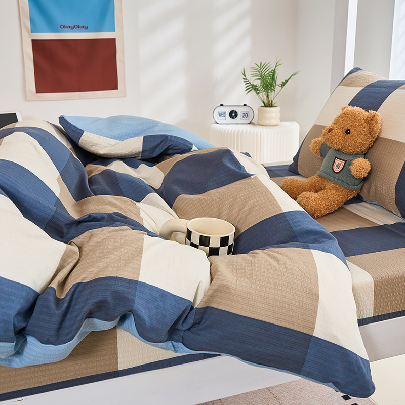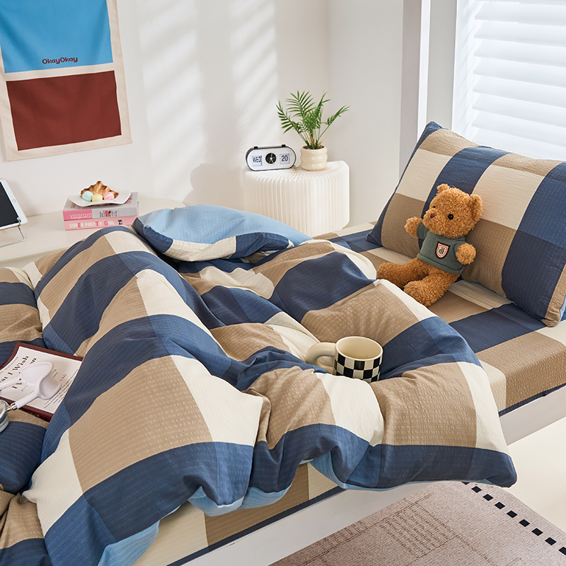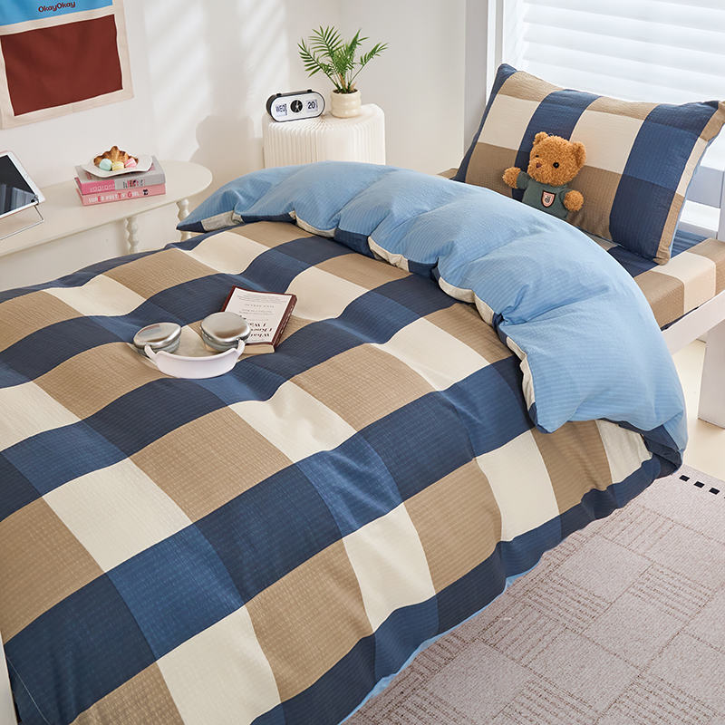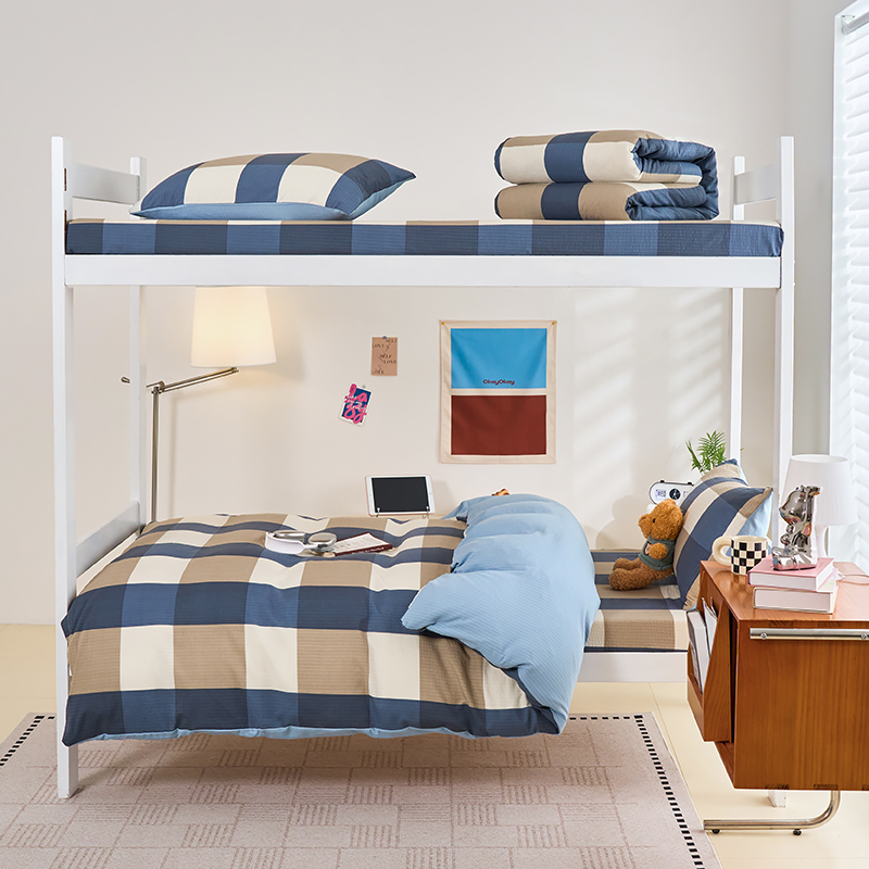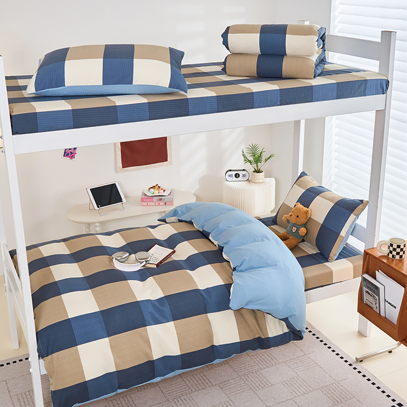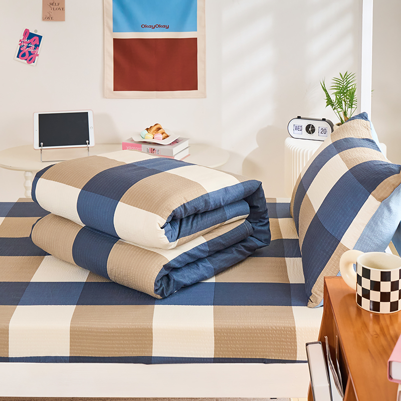 商品名称:卢赛尔 2025新款简约格子水洗学生季学生宿舍三件套 圣代-蓝