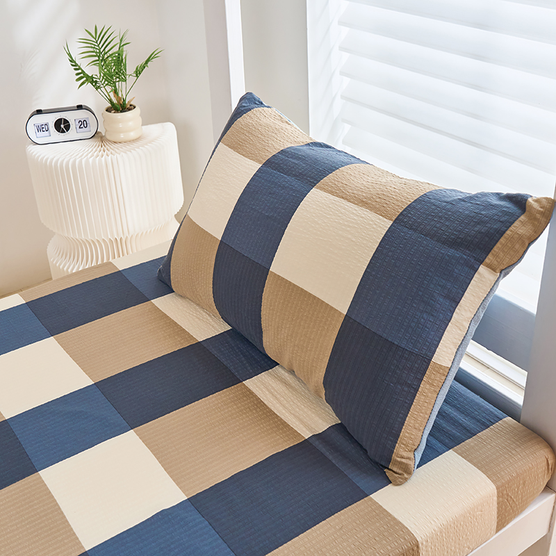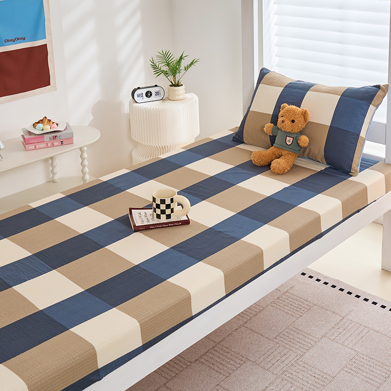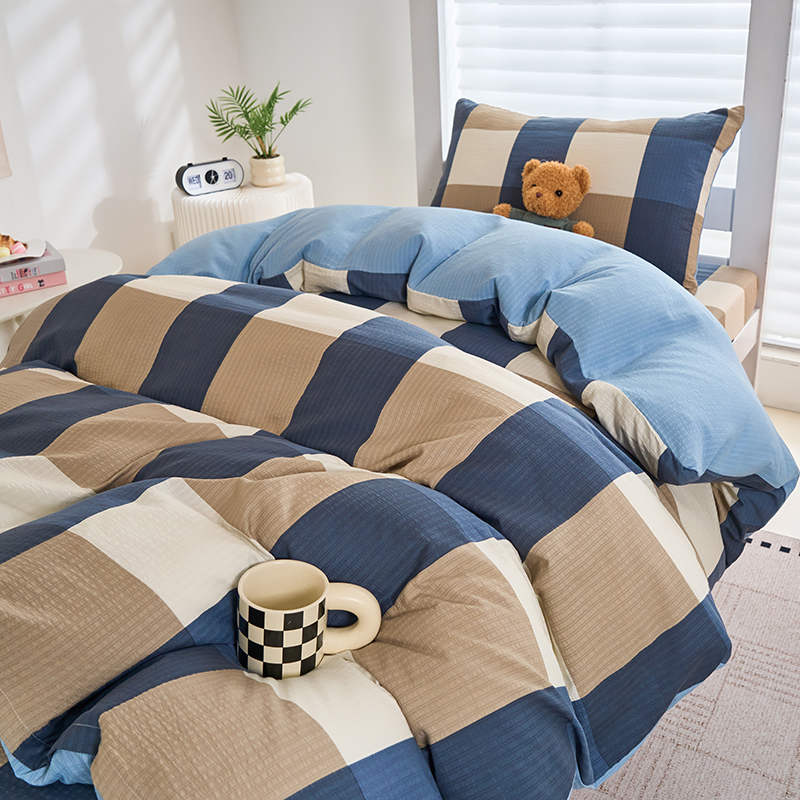 卢赛尔 2025新款简约格子水洗学生季学生宿舍三件套 圣代-蓝