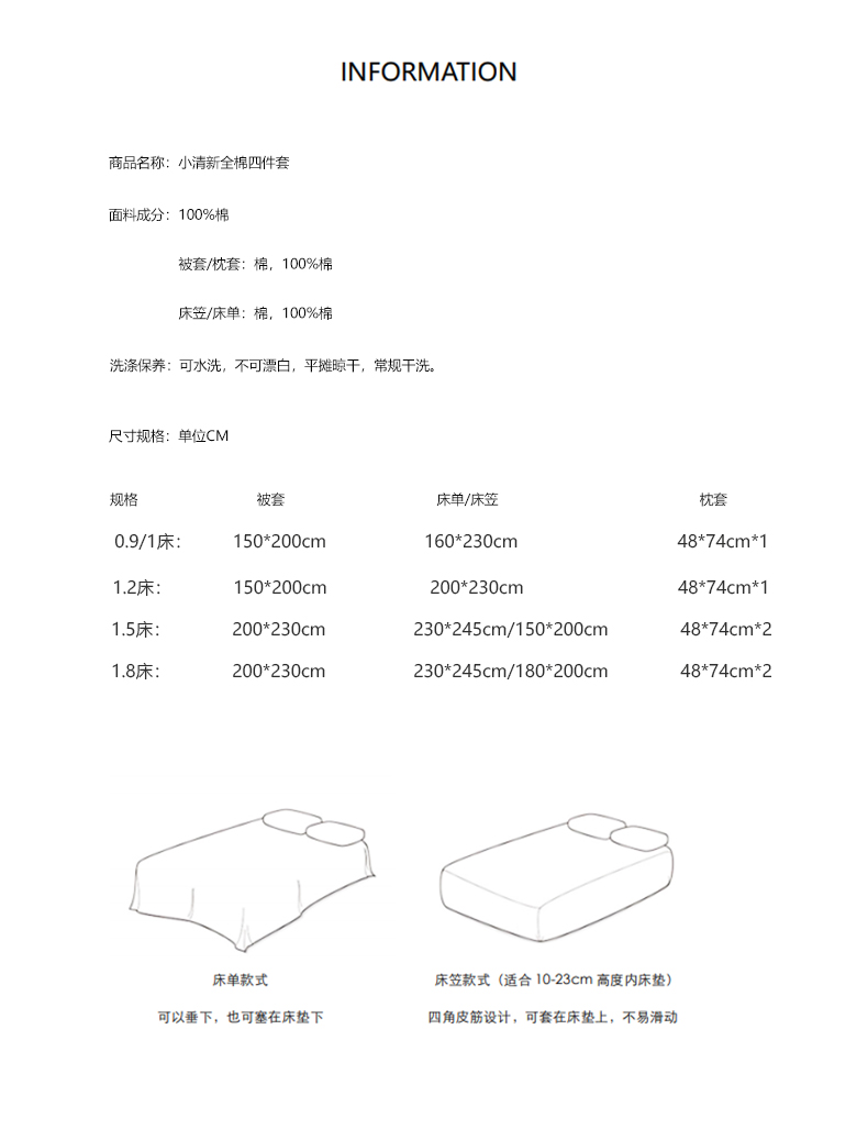 1.5m床笠款四件套 200*230被套,150*200+30床笠,枕套*2