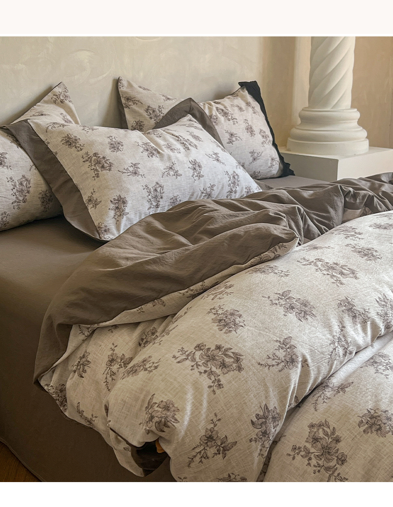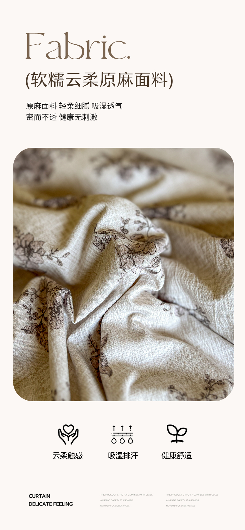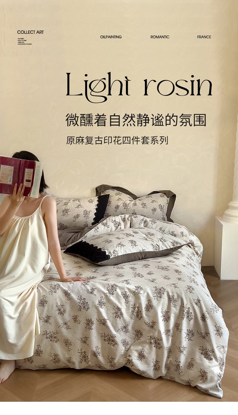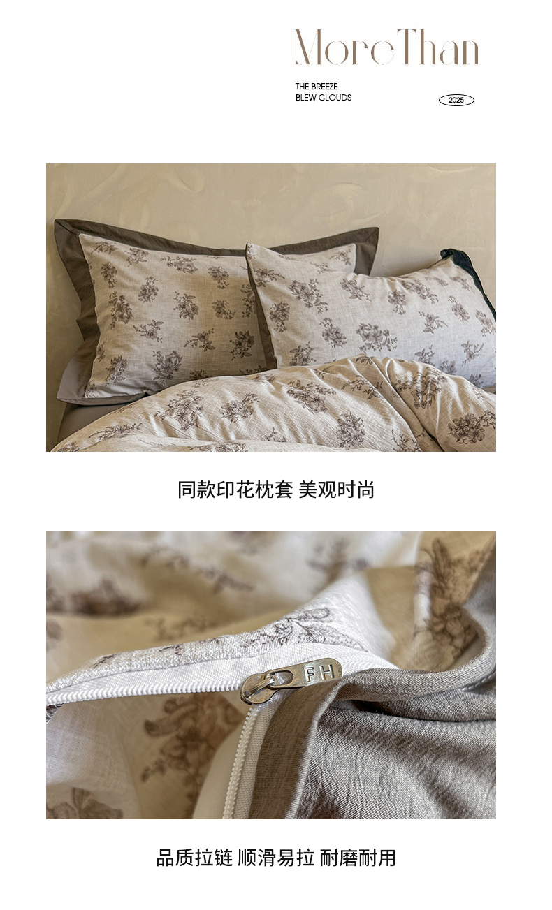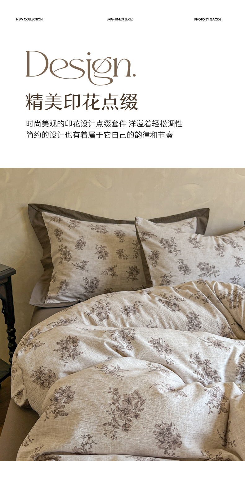 商品名称:繁花家居 2025秋冬磨毛复古亚麻棉麻提花超软四件套 素锦花漾