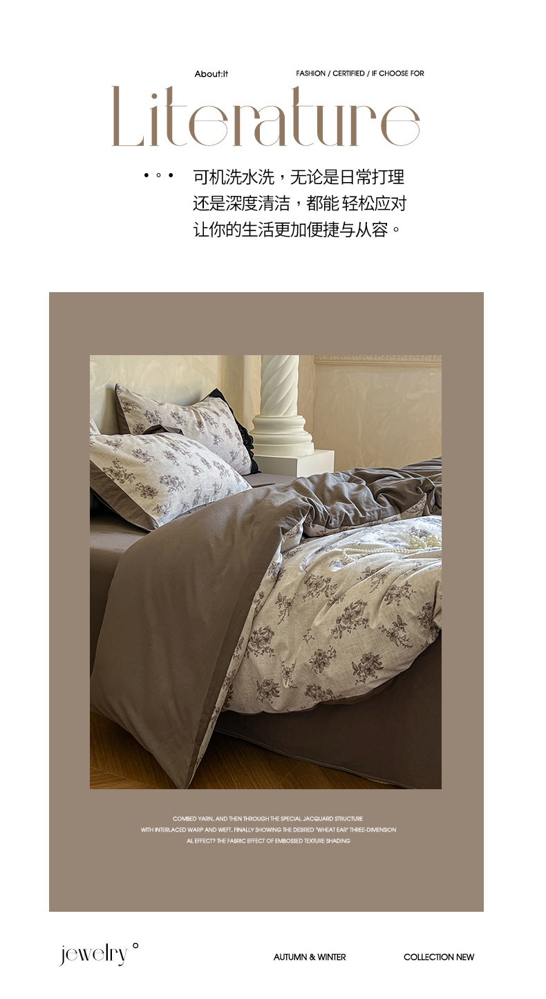 繁花家居 2025秋冬磨毛复古亚麻棉麻提花超软四件套 素锦花漾
