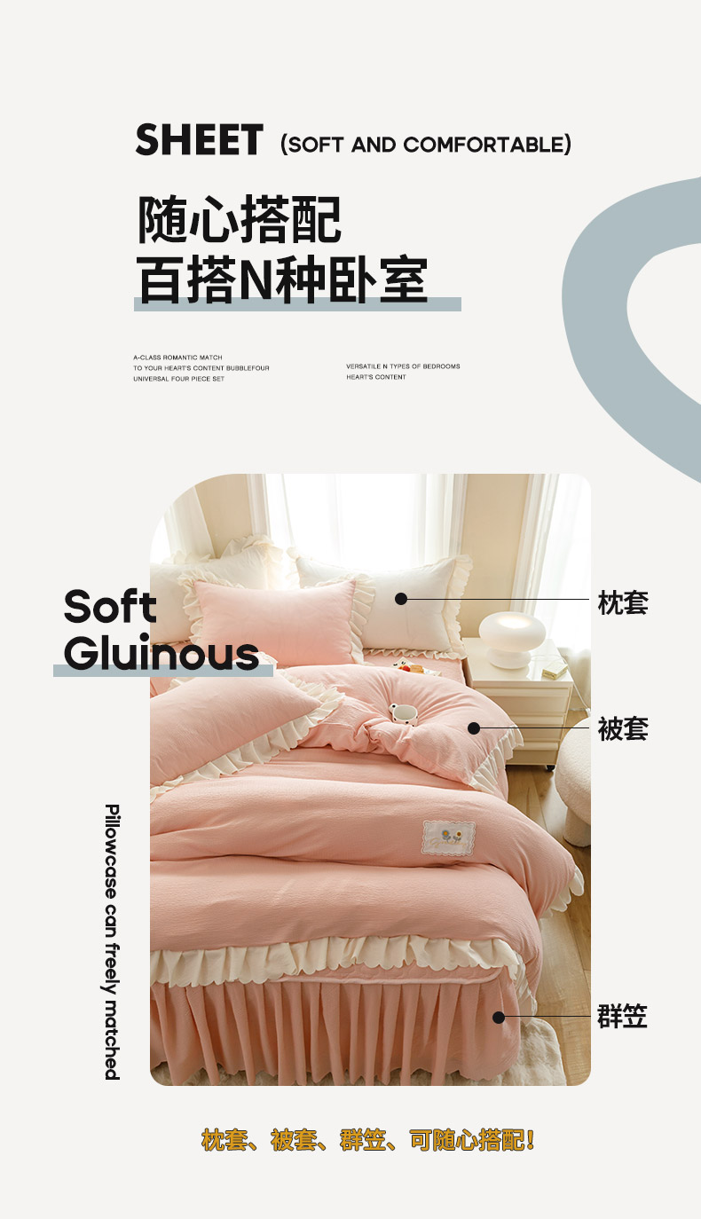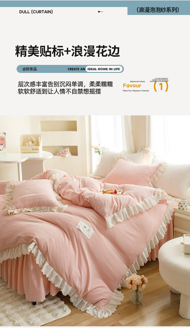 当前位置: 91家纺网 > 商品网购 > 床品套件 > 四件套 > 其它四件套 > 绒世界 2025新款四季款夹棉泡泡纱床裙床笠被套四件套系列 玉色
