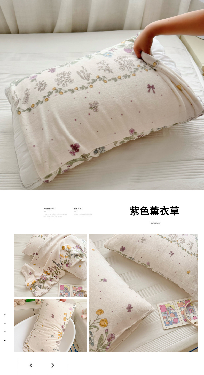 商品名称:禧缘家纺(原梦想家)2025新款牛奶绒纯色印花双开口枕套 紫色薰衣草