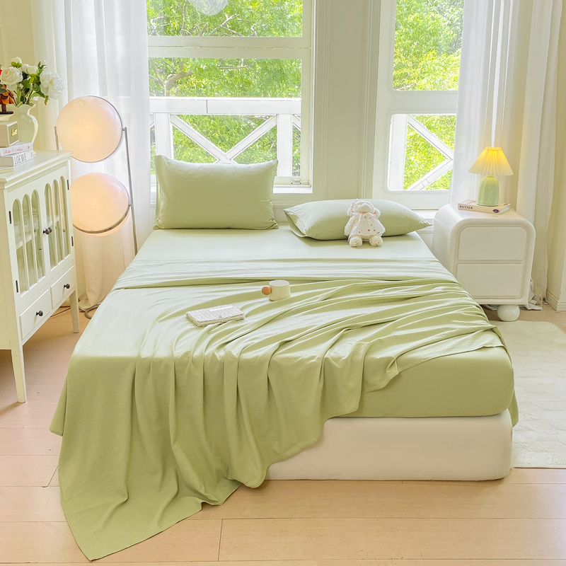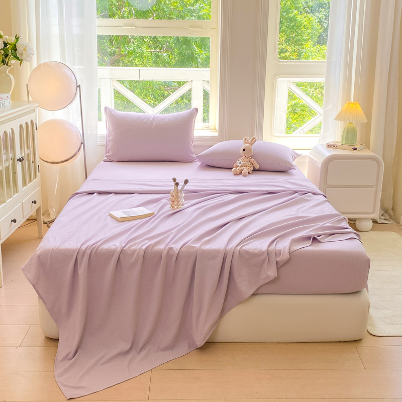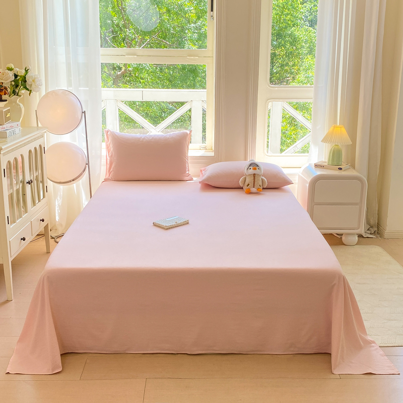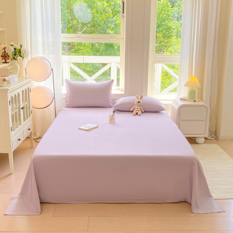 (总)朵朵家纺 2025新款云感提花双层纱纯色单床单被单(可定做尺寸),卡其,果绿,奶黄,浅灰,雾蓝,香芋紫,樱花粉