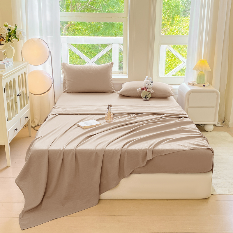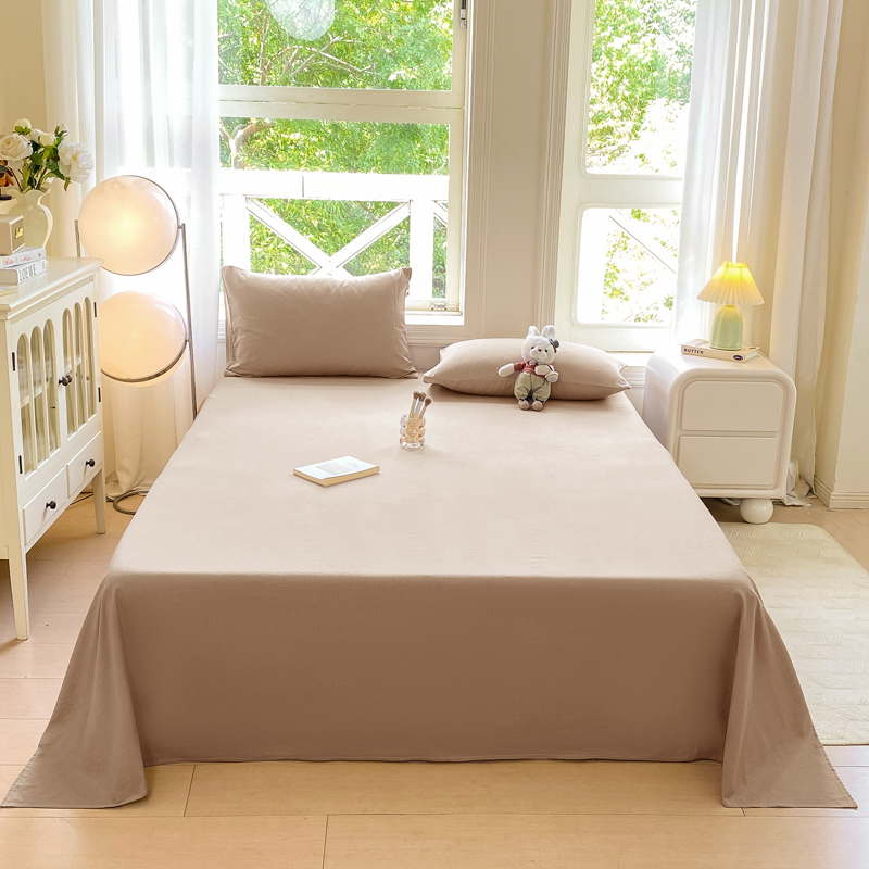 朵朵家纺 2025新款云感提花双层纱纯色单床单被单(可定做尺寸) 卡其