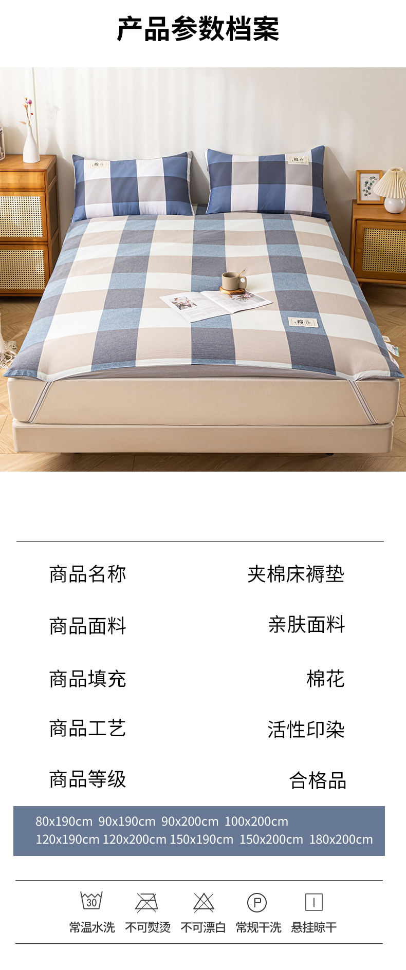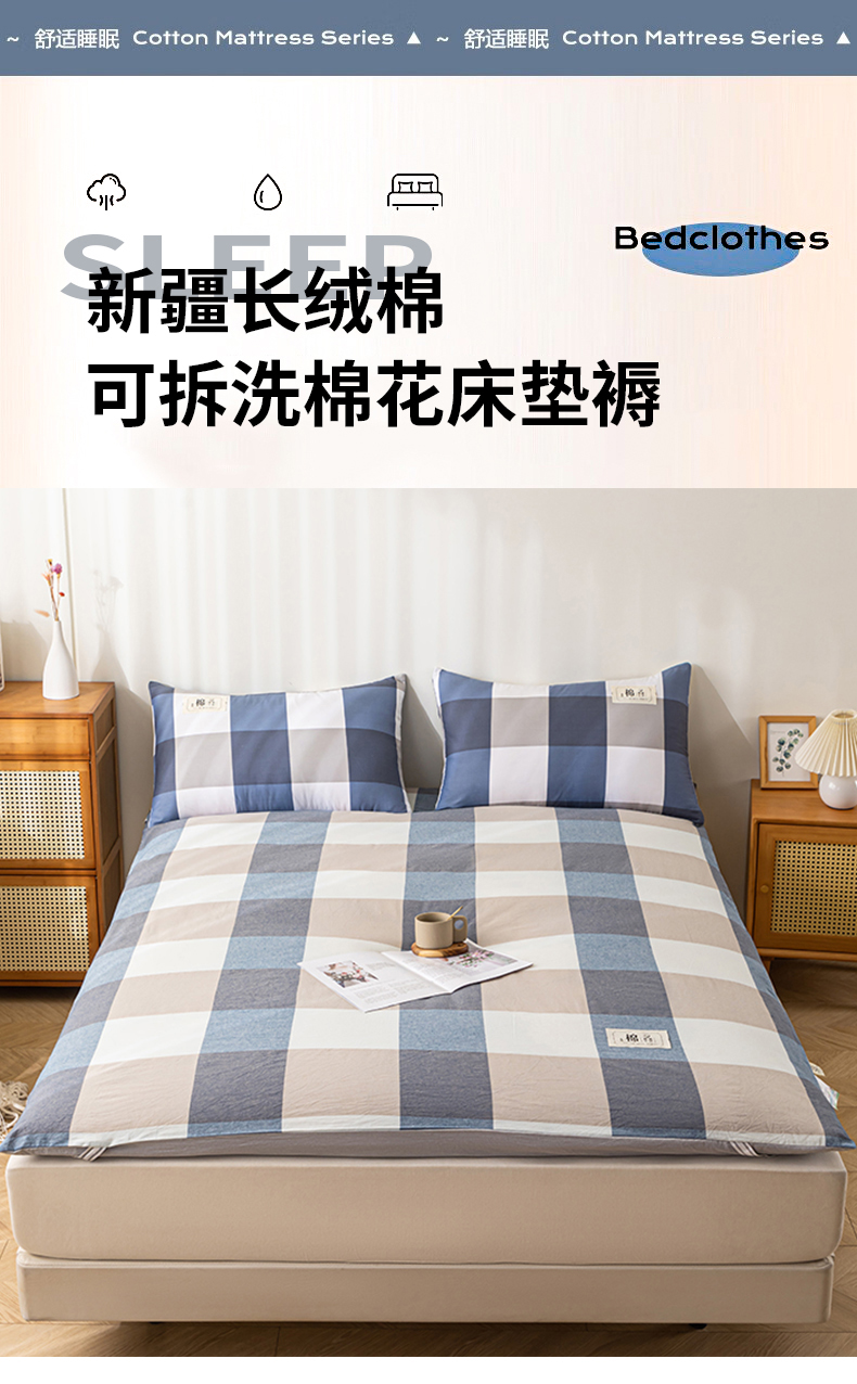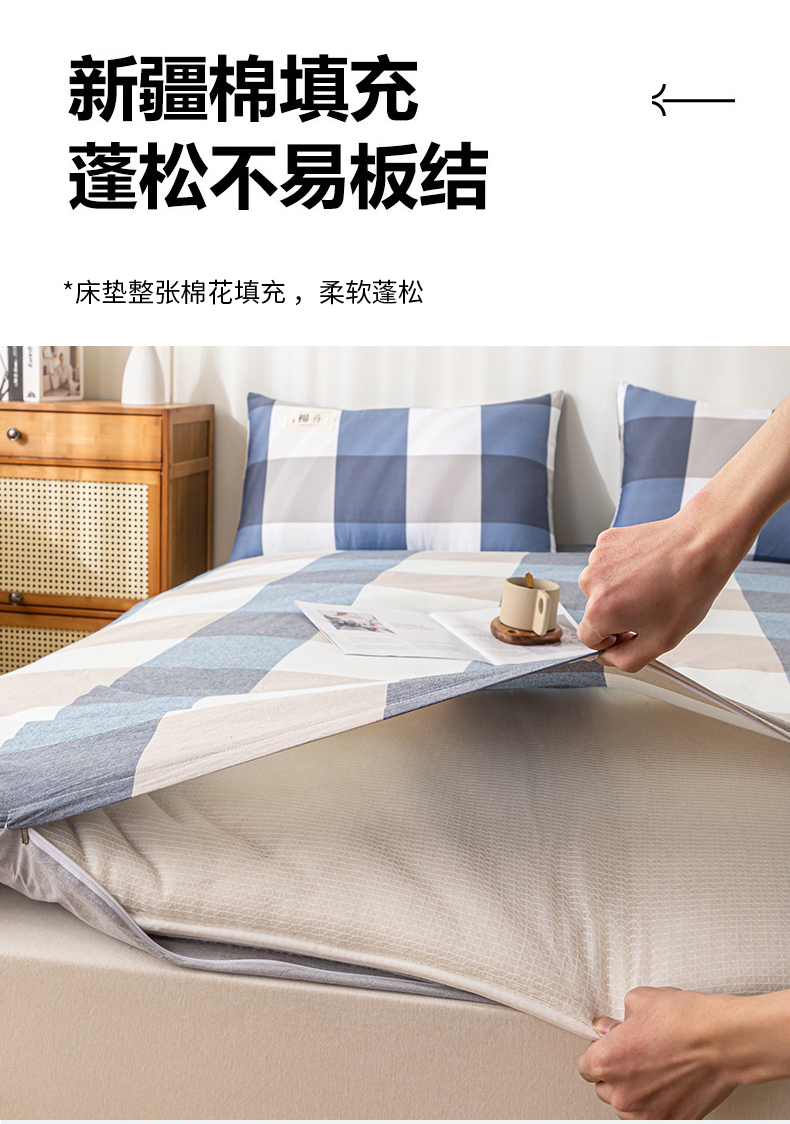 商品名称:悠米悠家 2025新款新疆长绒棉可拆洗棉花夹棉床褥垫成人款 简兮格