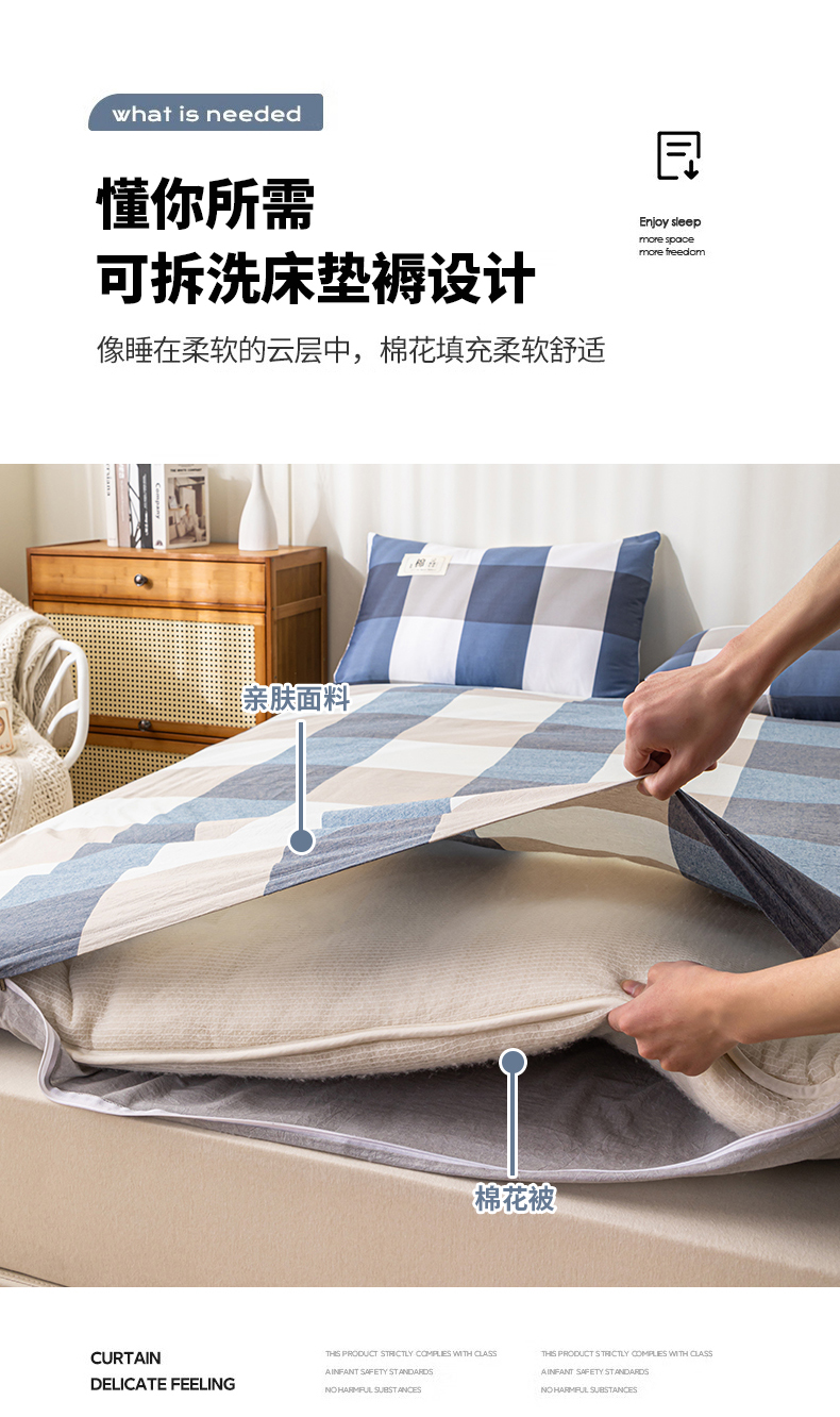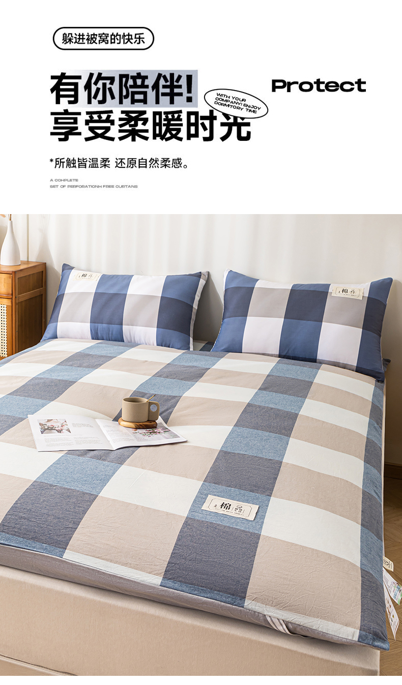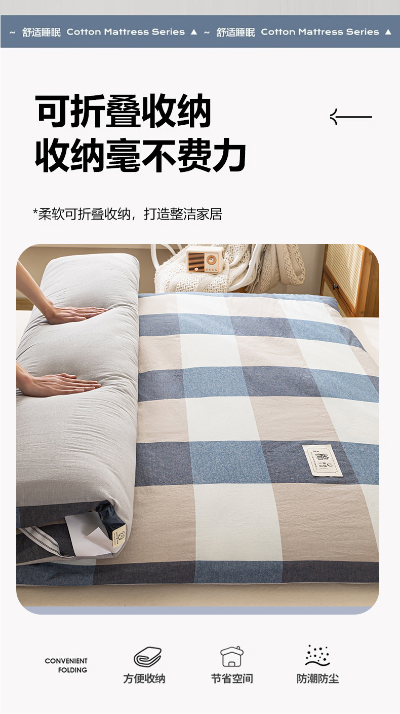 (总)悠米悠家 2025新款新疆棉花学生款可拆洗床垫,宾利兰格,高级灰格,格子控,灰色,极简绿格,简兮格,橘色小格,蓝小格,墨绿小格