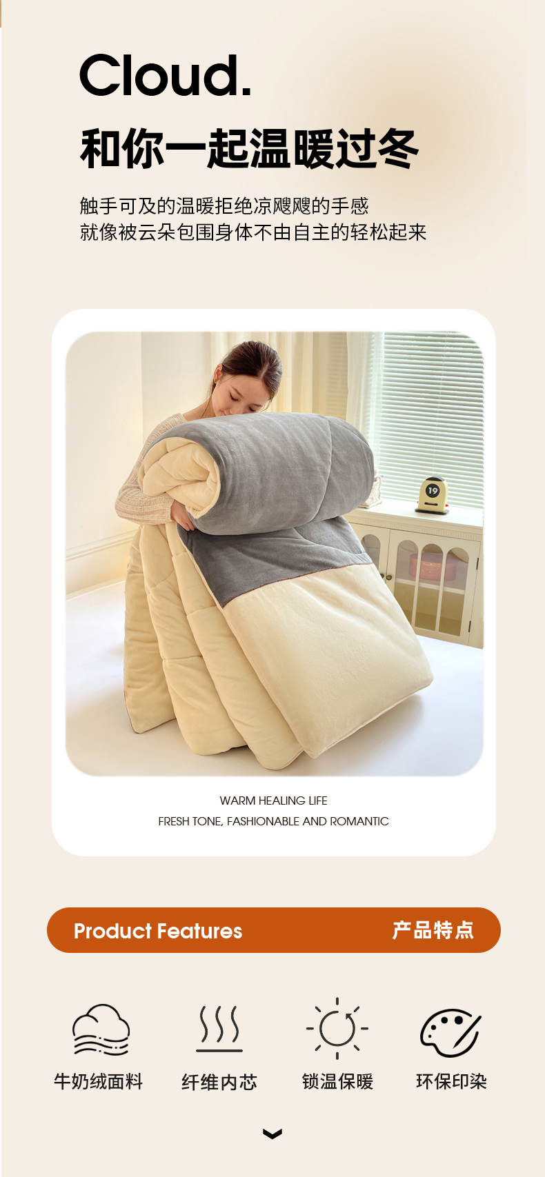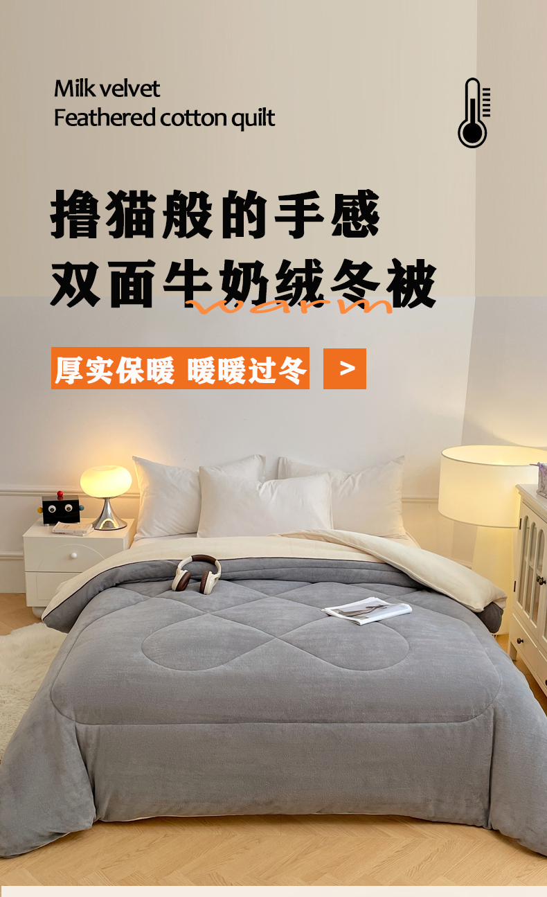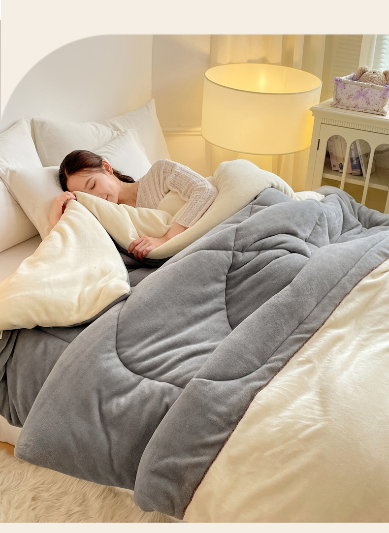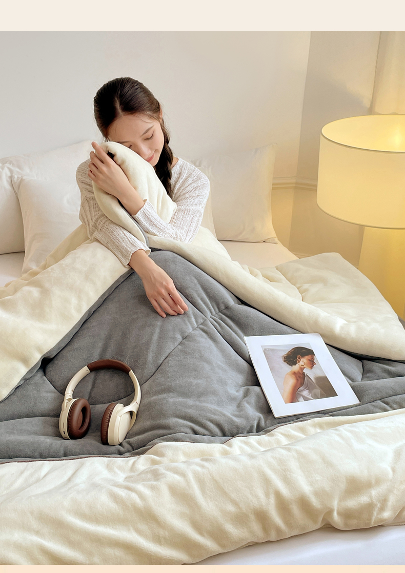 VIP被业 2025新款高克重加绒加厚牛奶绒冬被拼接设计被子被芯 白灰