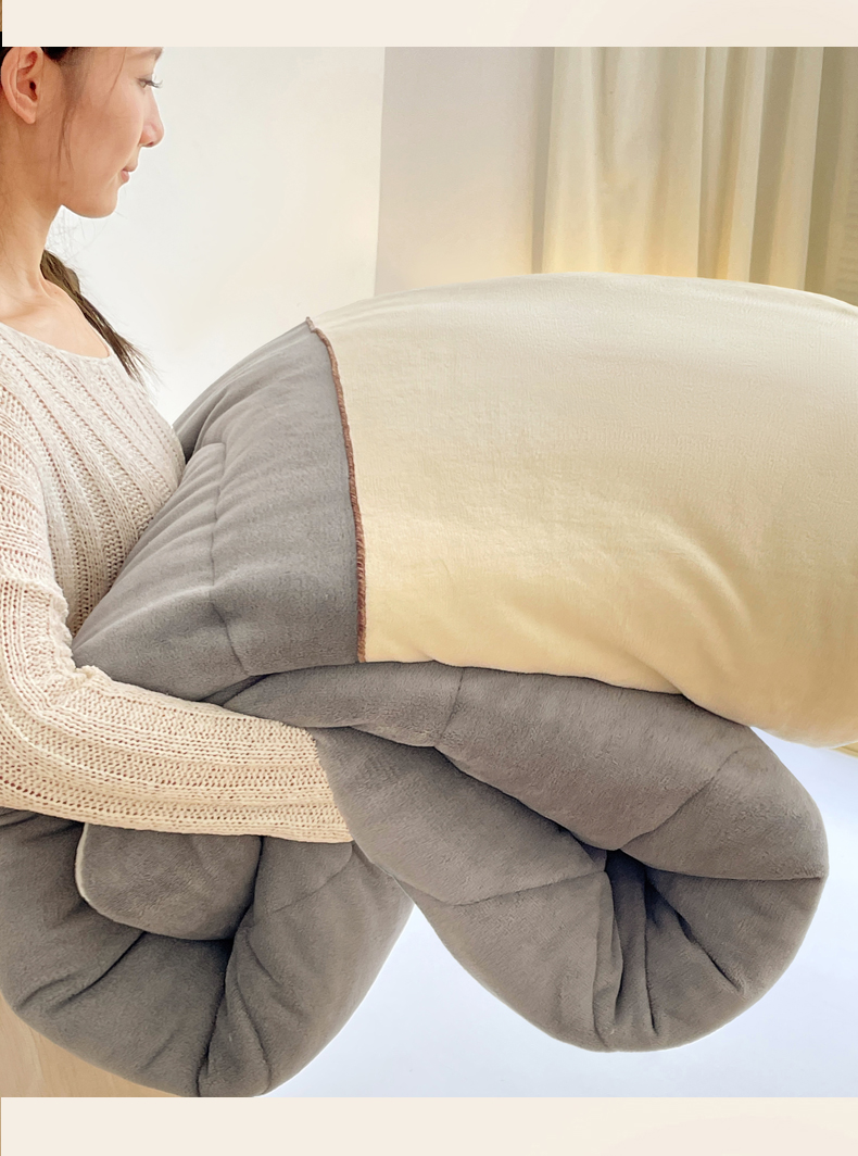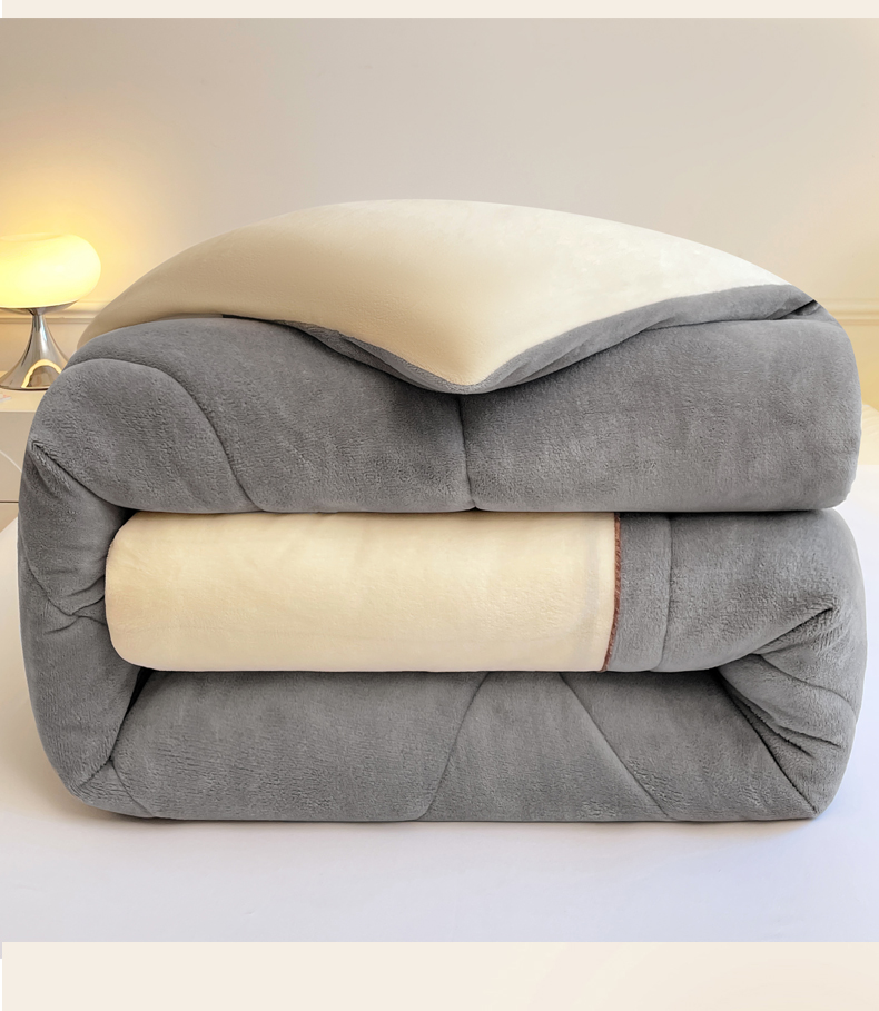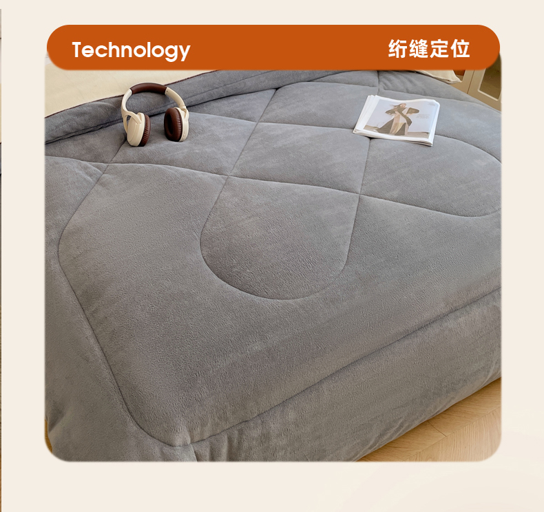 • 91家纺网 家纺一手货源 找家纺 VIP被业 2025新款高克重加绒加厚牛奶绒冬被拼接设计被子被芯 白灰