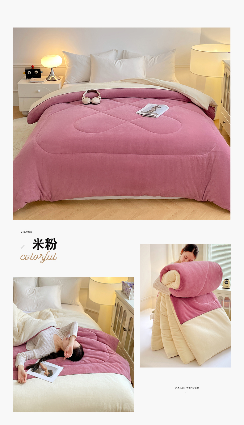 • 91家纺网 家纺一手货源 找家纺 (总)VIP被业 2025新款高克重加绒加厚牛奶绒冬被拼接设计被子被芯,白灰,灰色,蓝灰,米蓝,米粉