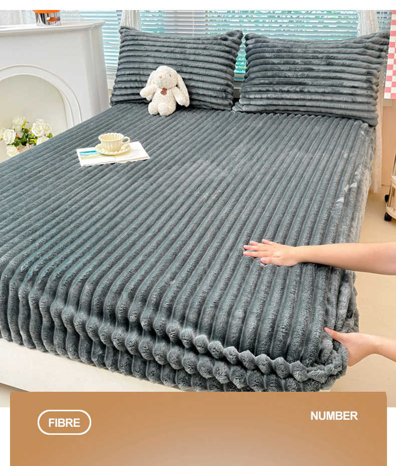 • 91家纺网 家纺一手货源 找家纺 馨乐家纺 2025新款A类300g兔毛抽条床笠 深灰-床笠