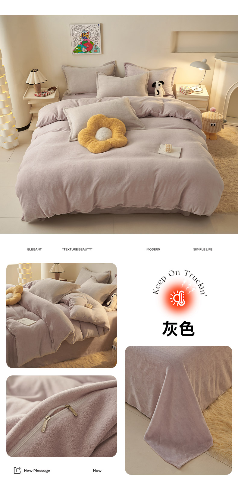 当前位置: 91家纺网 > 商品网购 > 床品套件 > 四件套 > 牛奶绒四件套 > 2025新款多巴胺小红书纯色牛奶绒四件套牛奶绒被套跨境定制-风格二 雅致灰