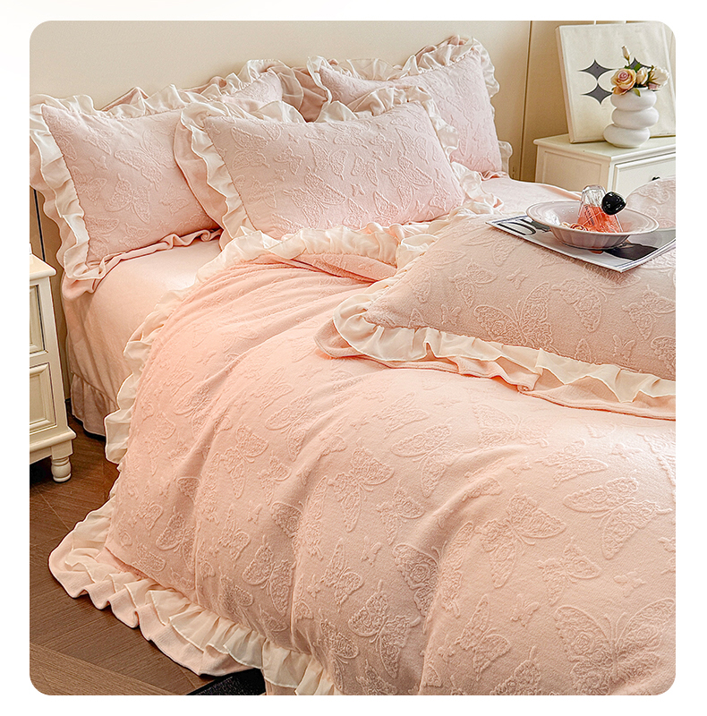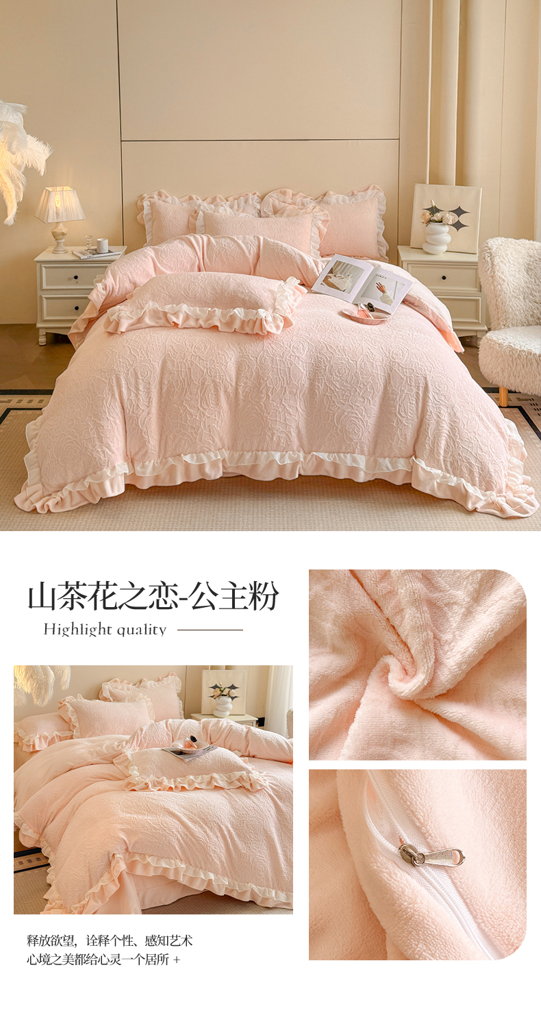 当前位置: 91家纺网 > 商品网购 > 床品套件 > 四件套 > 牛奶绒四件套 > 爱家(原缔乐家纺) 2025新款A类牛奶雕花绒四件套 山茶花-蝴蝶之恋系列 山茶花之恋-梦幻紫