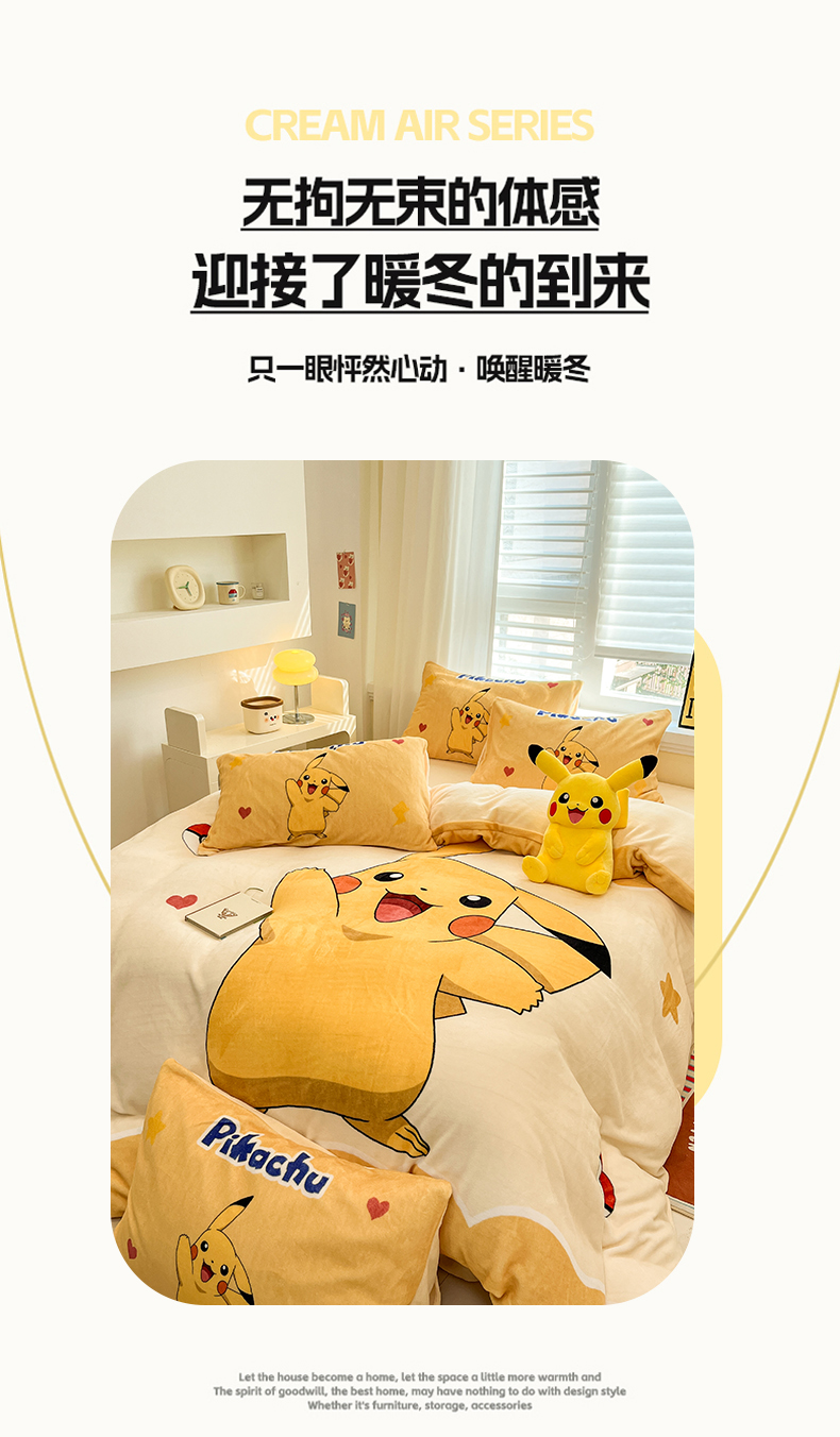 当前位置: 91家纺网 > 商品网购 > 床品套件 > 四件套 > 牛奶绒四件套 > 金爱家 2025新品大版卡通平网数码印花加厚高克重牛奶绒皮卡丘系列四件套 绒大阪套件-俏皮皮卡丘