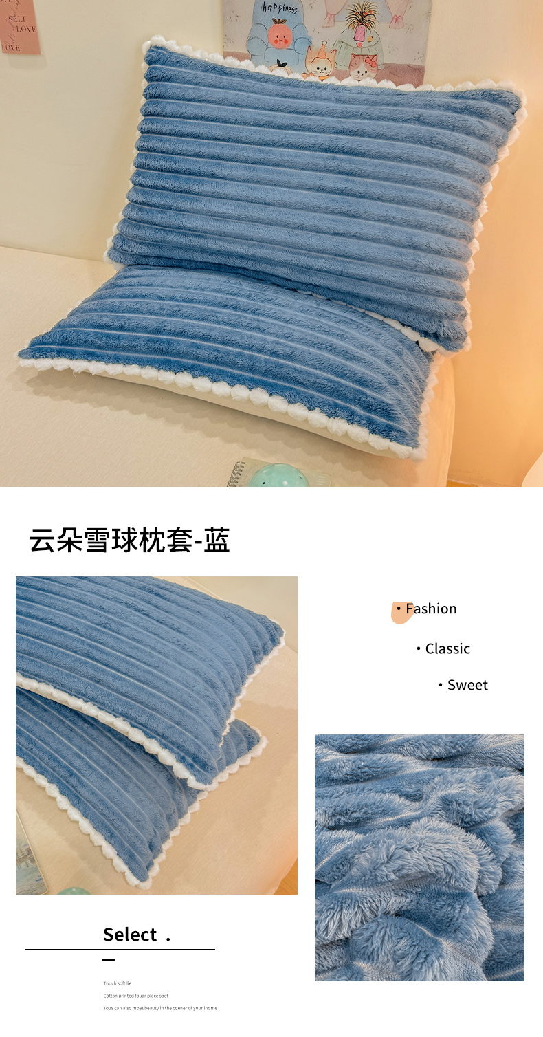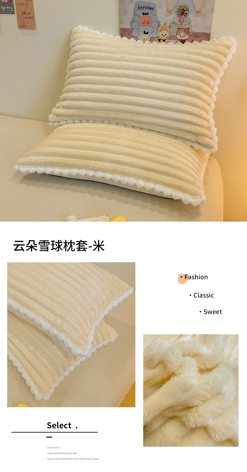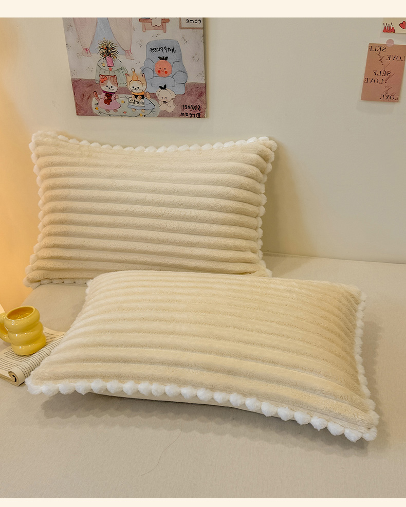 商品名称:眠势力 2025新款高克重牛奶绒球球枕套抽条兔毛绒小毛球加厚雪球枕头套拉链款 云朵雪球毯-灰