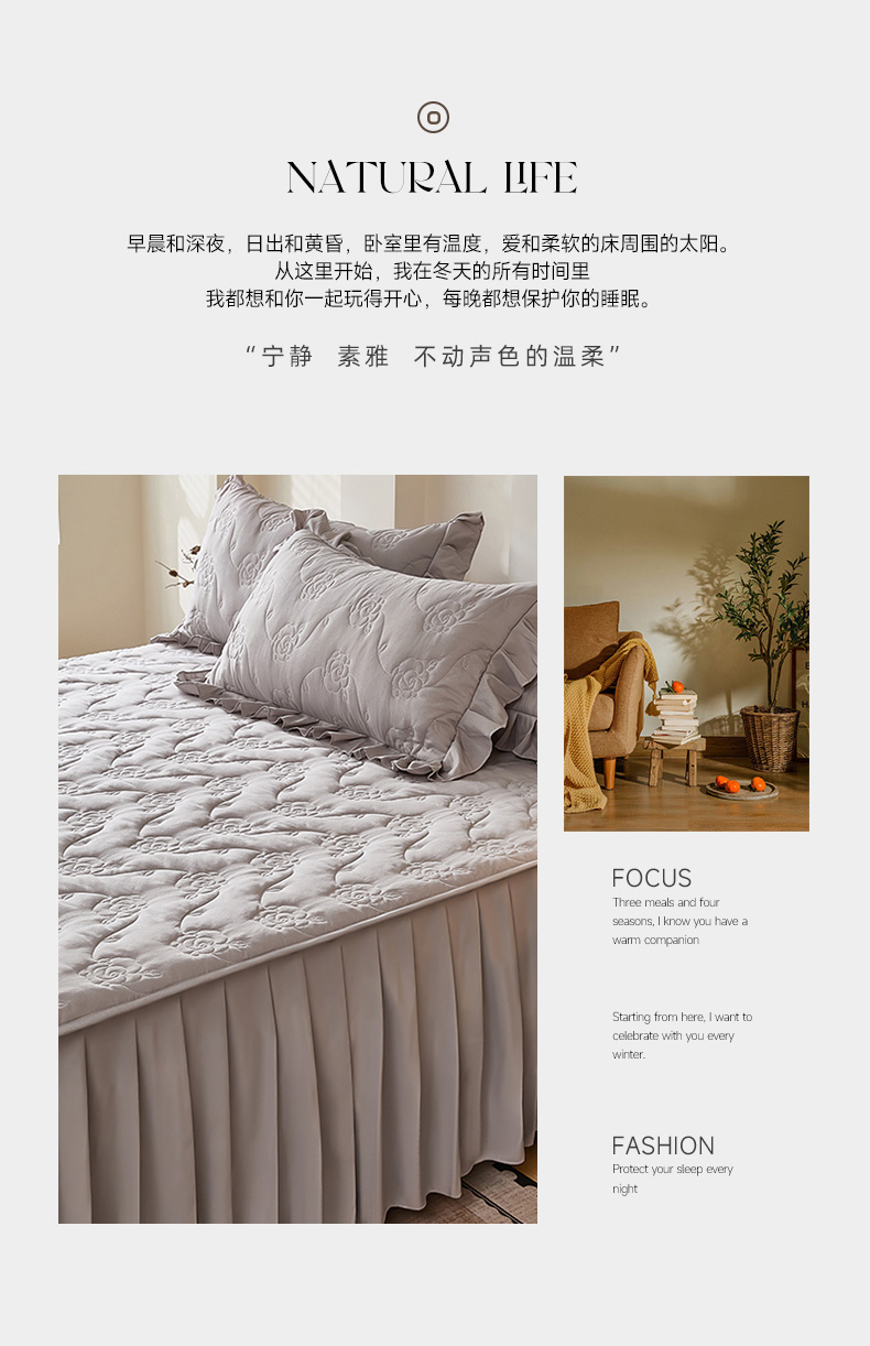 当前位置: 91家纺网 > 商品网购 > 床上用品 > 床裙 > 瑞兴纺 2025新款水洗磨毛夹棉床裙三件套系列-繁花 繁花-高级灰