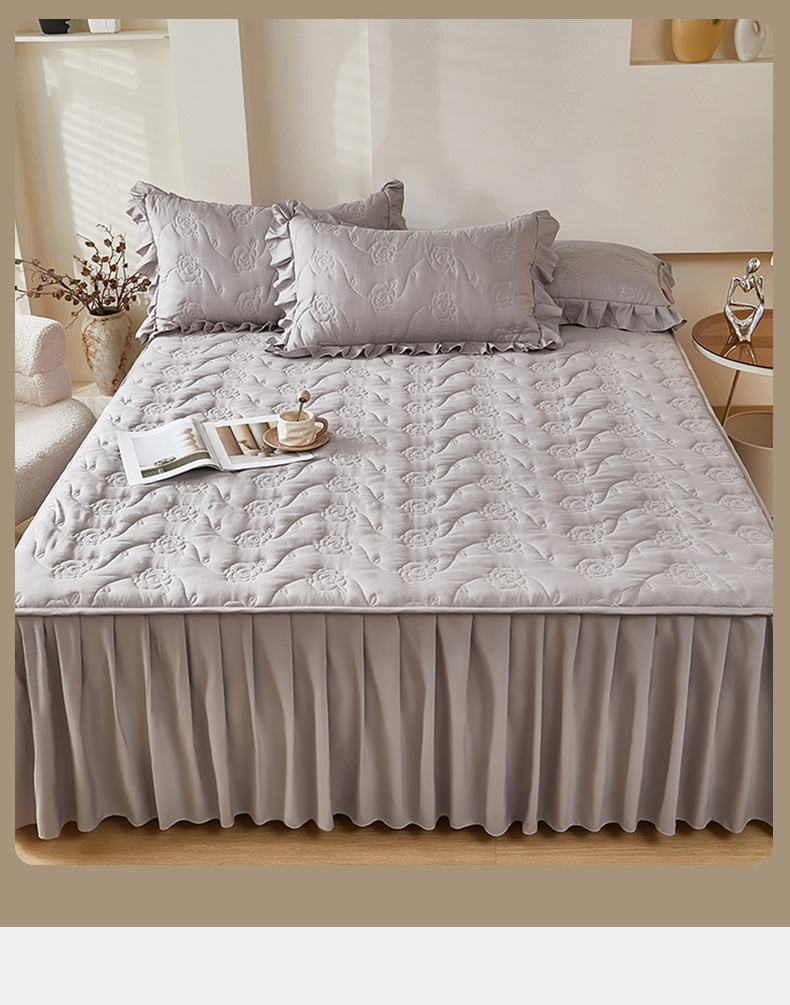 瑞兴纺 2025新款水洗磨毛夹棉床裙三件套系列-繁花 繁花-高级灰
